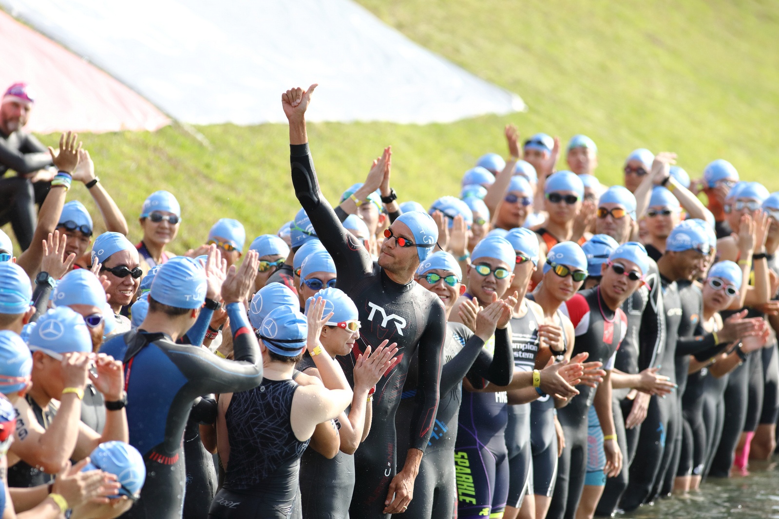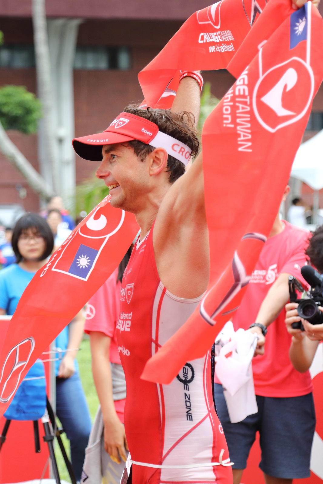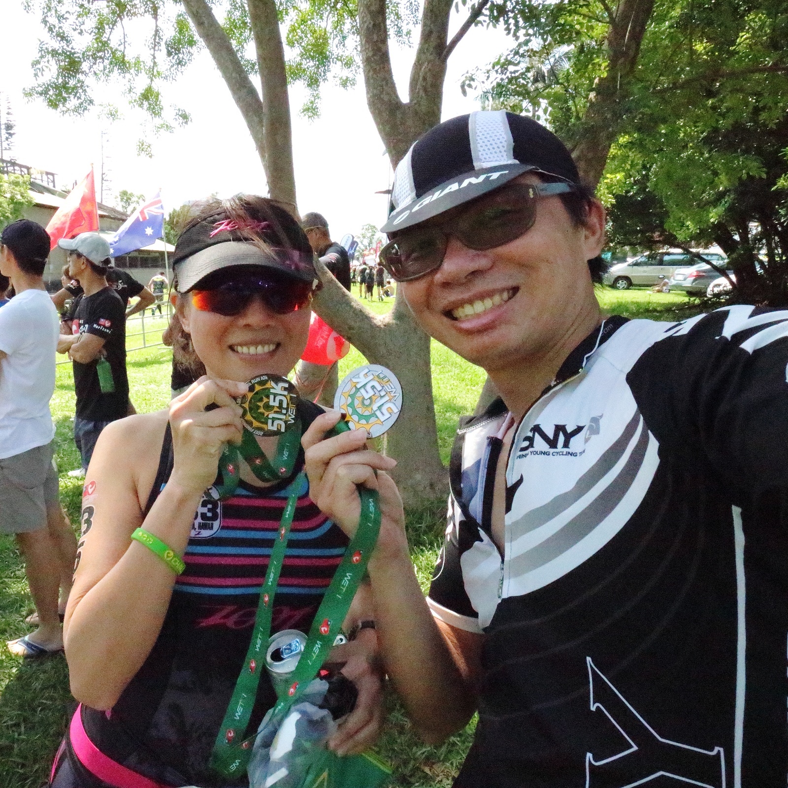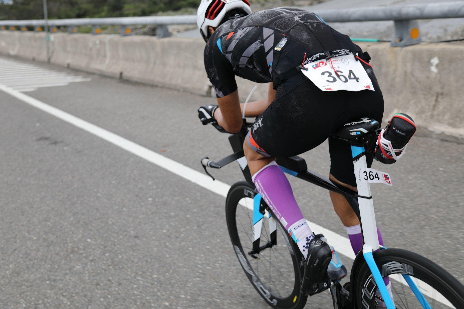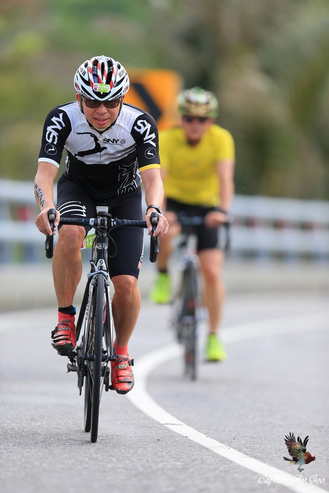 結束比賽後一週..因為公路車送修,我又來到北教大泡水游泳 原以為比賽可以一次完成1500公尺的我 已經和「水性」這位朋友多拉近了幾步 沒想到游了300公尺後.. 才滿腦子問號.... 我到底是怎麼完賽的XDDDD --------------------------------------------------------------- 完成多次鐵人三項的PETER,這一二年一直鼓吹我來參加鐵人三項 一直誘惑我說鐵人三項的妹都很正(老實說..路跑的女生比較多耶~) 但我是那種為了妹就會去參加的人嗎??當然不是啊~ 雖然我喜歡運動,但還真的沒有很愛比賽那種緊張、競賽的感覺~ 年紀大了,好勝心不強,除了不喜歡被女生刷卡外:P(那個總字輩的筱嵐姐和假掰MO例外,請儘量刷~) 喜歡「玩」,不是很愛「比」 真的報名參加比賽也都會帶著相機,沿途拍照留念 畢竟什麼時侯會再來一次真不知是何時了 也許有人會覺得這樣不尊重比賽,但這是我比賽的方式!!享受比賽的一切~~ 講真話是拚到死也上不了凸台,也不是說上不了凸台就不要拚命啦!!反正多拍幾張照片也不會很浪費時間,最多也差個5-10分鐘而已,但賽後多了很多照片可以看:P 但三鐵賽不同,感覺大家會斤斤計較成績 拚的都是速度 似乎不適合我這種愛玩的 且我游泳弱,游個50公尺就快喘死,又不想去上課,沒動力認真練.../_\ 加上~~三鐵比賽的報名費真是TMD的貴..(我是小氣鬼) 515早鳥價就是2500..113更要三倍價...226破萬了..Orz 游泳上岸後又要溼著屁股騎車,騎完車又要頂著大太陽跑步..,光想就令我打退堂鼓 不過主因還是我不會游泳 若真的練好游泳,也許可以來體驗看看 去年底不正直的PETER哥說他每週四都會去北教大練游泳 他說他可以教我~ 嗯~~有免費的教練可以趁機學好游泳也不錯!! 國中時曾上過游泳課,也能游50公尺~ 所以我一直覺得「我是會游泳的」,所以我一直覺得「我是會游泳的」,所以我一直覺得「我是會游泳的」(很重要,所以說三次),只是「姿勢不正確」和「換氣不順」而已 沒想到游給PETER看了之後.. 他說...你「根本不會換氣」嘛~~ 什麼..我不會換氣(晴天霹靂) 我明明嘴巴都有張開啊~怎麼不會換氣呢?? 「只有嘴巴張開而已啊,沒有真正把氣吸進來,所以游一下就會很喘」,PETER說~~ 沒錯~每次游個50公尺就會喘的要死XD 「從韻律呼吸開始吧!!」,PETER說 「水中吐氣,上來用力吸氣~~」「水中吐氣,上來用力吸氣~~」「水中吐氣,上來用力吸氣~~」 就這樣...我三鐵游泳之路從韻律呼吸開始... 程度就是比不會的好一點而已 Orz 先學好游泳再報名..,我心裡一直是這麼想..,所以練的很不積極,加上時間還有半年,一點都不緊張 後來PETER說有位朋友(奶精)有事不能去,名額要讓出來 是早鳥價,問我要不要接.. 那時游泳的大概是學到可以不太費力的游蛙式,換氣也已經不會那麼喘,連續游100公尺沒問題...,但速度很慢,有多慢呢??一趟50公尺大概2分多鐘..= =" 大魔王也私訊來說他決定報226,目標SUB12,問我要不要一起去 也不知那來的勇氣,就和PETER說...我接吧!! 我想...游泳應該沒那麼難吧,我應該可以的!!我應該可以的!!我應該可以的!!. 然而,後來的進展不如想像中順利..游泳真的不是靠暴力可以解決(泣) 一方面我一週頂多練習1次,一方面技巧也遇上瓶頸..(夾不到水...XD) 3月初,我的蛙式還停留在100公尺要游3:40-3-50的速度(已穿浮力褲在練習了),老婆了解我的焦慮,所以只要我說要去練游泳,她都會默默的說好..,而二個小孩在最後二個月也都知道當爸爸早點回家時,不是要陪他們玩,而是要去練游泳XDD 515鐵人賽游1500公尺50分鐘關門,自己在泳池測過1500公尺要花上56分鐘左右,在開放水域游,沒有標線,基本上游的距離會更長,時間會更久,所以練習回家後都很沮喪的和老婆說依目前的速度...百分百會被關門....T___T,那時心中還會想,那是不是改113會比較好,113游1900公尺,90分關門,時間相對寬裕很多,只是報名費也貴三倍...Orz,還是先體驗看看就好XDD 那為什麼不用自由式游呢?? PETER說..自由式更不好學,且比賽一緊張很容易吸不到氣,先學蛙式自保..,且蛙式可以定位,自由式很多人會游歪,修正來修正去,時間也差不多 這樣說也對,騎車跑步慢就算了..,在開放水域游泳,一個閃失是有悠關生命安全的~ 所以即使蛙式很慢,但相對於自由式輕鬆,比較容易自保... 賽前小猴也多次來關心我練的如何? 約了一天早上和LEO,PONKI夫婦一起到北教大團練游泳 沒想到那天大爆發 蛙式跟著LEO可以游出50公尺1分24的速度 自由式跟著碰也可以1分06左右 那時心想,若有這速度,比賽就不用緊張了,哇哈哈~ 可是...那天的狀況只是曇花一現,僅有那次,後來練習再也沒出現過蛙式100公尺可以游進3分內...(嗚~~) 周遭朋友看我那麼焦慮,紛紛來幫我,不是和我說該怎麼矯正姿勢,不然就PO教學影片給看,幾位226鐵人更是直接現場指導...(雨棠也抽空來看我的蛙式..) 可惜不成材的我還是一直卡到瓶頸,速度未能提昇T___T(水性不和我交朋友) 轉眼間來到4月,距比賽只剩不到一個月,焦慮的我開始翻WINNIE和大魔王的初鐵文章,看看人家以前是怎麼比的,然後到處問朋友,CT關門是不是那麼嚴格,50分關門時間一到就要被撈起來??若真的被拔晶片,還可不可以繼續比...,然後..我會在岸邊遇到美女鐵人一起加油打氣嗎??(大誤) 成哥在賽前特地拿一件浮力背心借我,試了之後的感覺是速度不會變快,但因為上半身比較浮,所以換氣就相對輕鬆,不過SIZE稍微大了一些,我就自己上網GOOGLE一