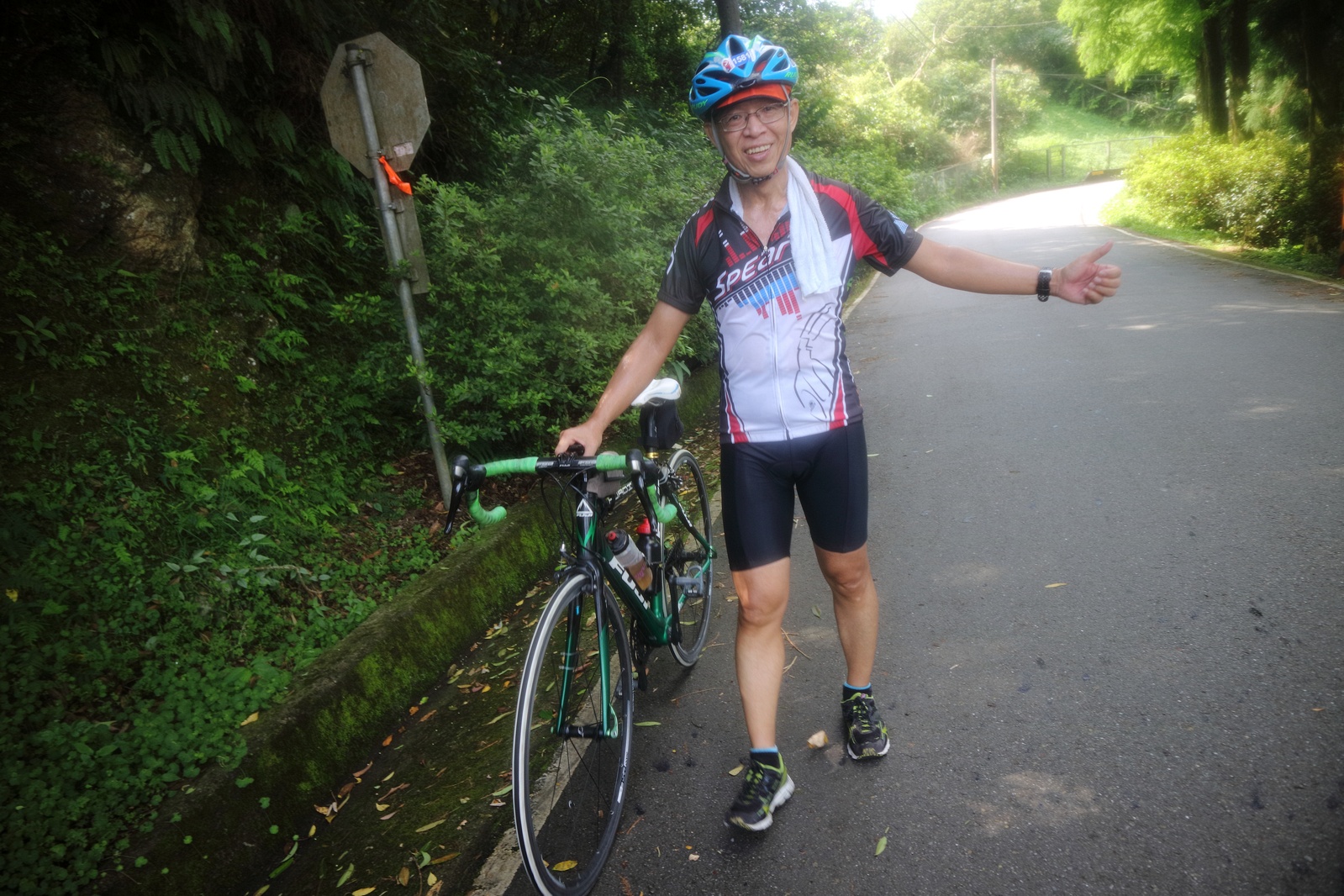 CT鐵人賽當天車就壞了,原想頂多一個月車就可以修復.. 沒想到是大工程,到目前還沒回來 5月底回中壢時趕緊把鋼管車牽出來,重新把座墊,卡踏和輪組裝回去.. 再換一下已經粉掉的把手帶和調整一下不太順的變速.. 鋼管車雖然老~雖然重,但總算是可以再騎車了.. 不然停了一個月,有興緻都等到沒力了!! 5月底,先自己騎騎貓空,媽呀..死命騎只有18分..Orz 好險一個星期後有稍微進步到17分.. 這週筱嵐姐要約騎北47+千島湖.. 本想騎騎北47就好,不過看看時間還早,就一起下到千島湖看看~ 之前有開車下去過一次,印象就是很陡很陡.. 果然...印象不是假的!! 要騎上來時,真是陡的不要不要的~~ 死撐活撐才不落地上來啊~ 呼~~ #聲特最大約騎 #詹董快辦桌