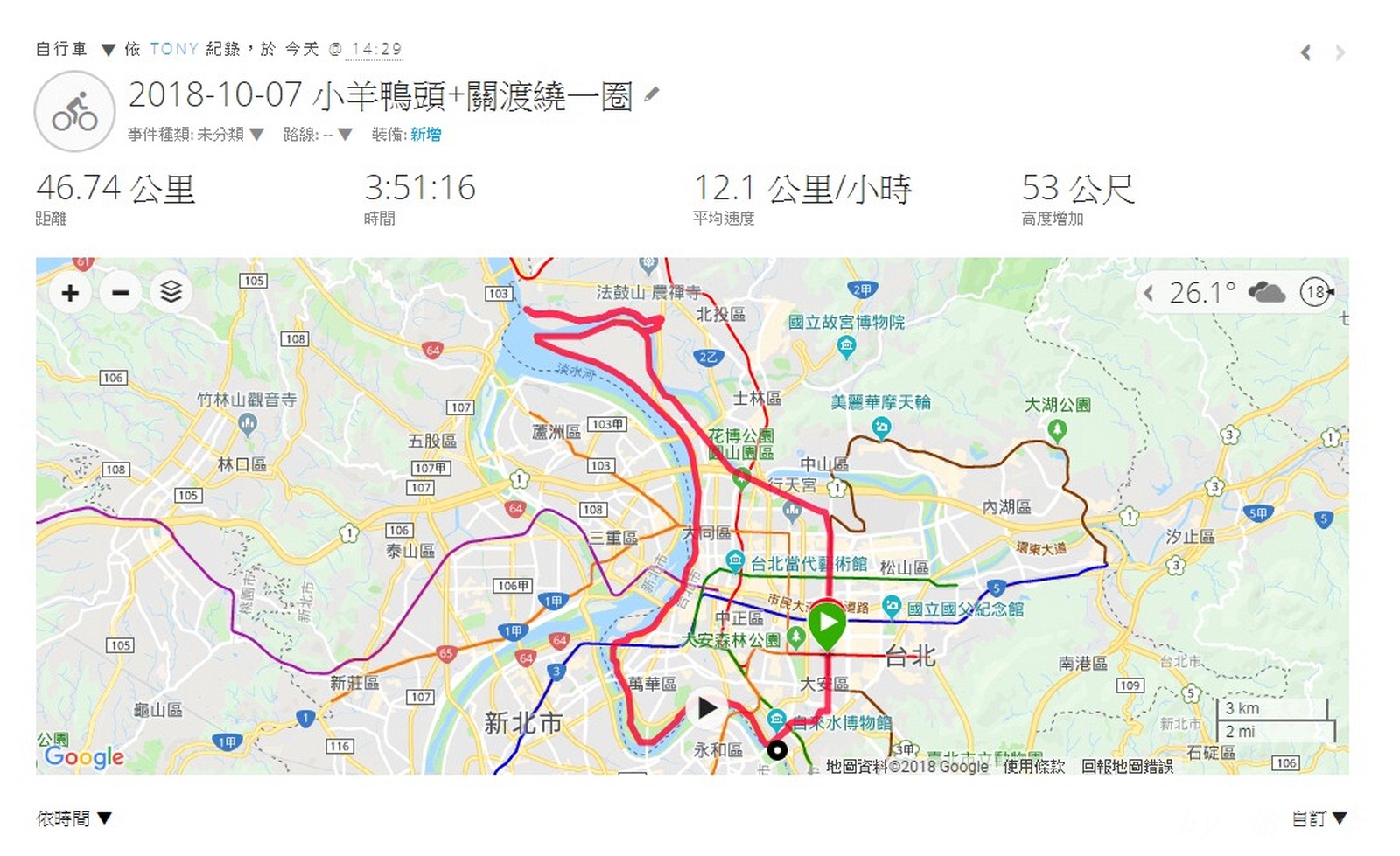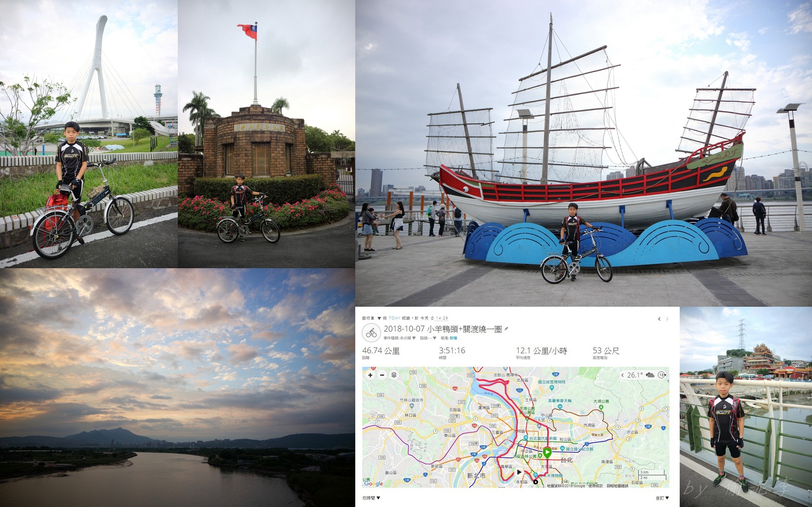 小羊河濱公館--大稻埕--鴨頭--關渡 繞一圈~ 本來說要挑戰50公里的 不過回程太晚補給...整個沒電!! 沒關係,下次再來~ 直接破60公里!! #謝謝大模送小羊的全套車衣 #鴨頭巧遇愛咪達令一家人