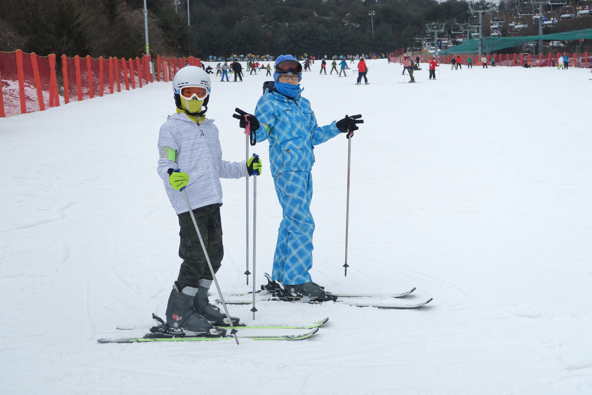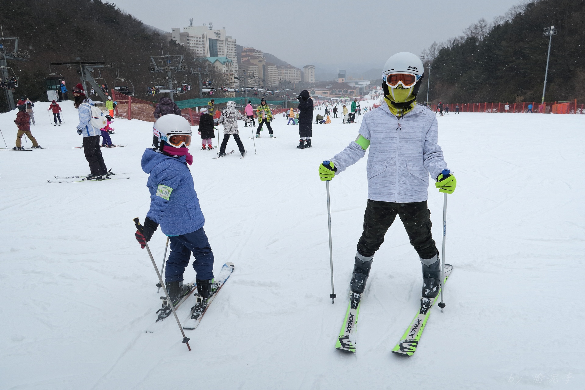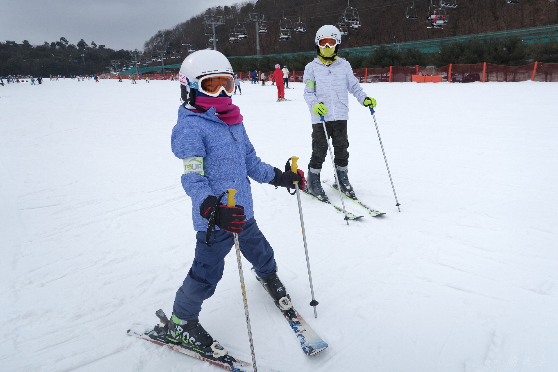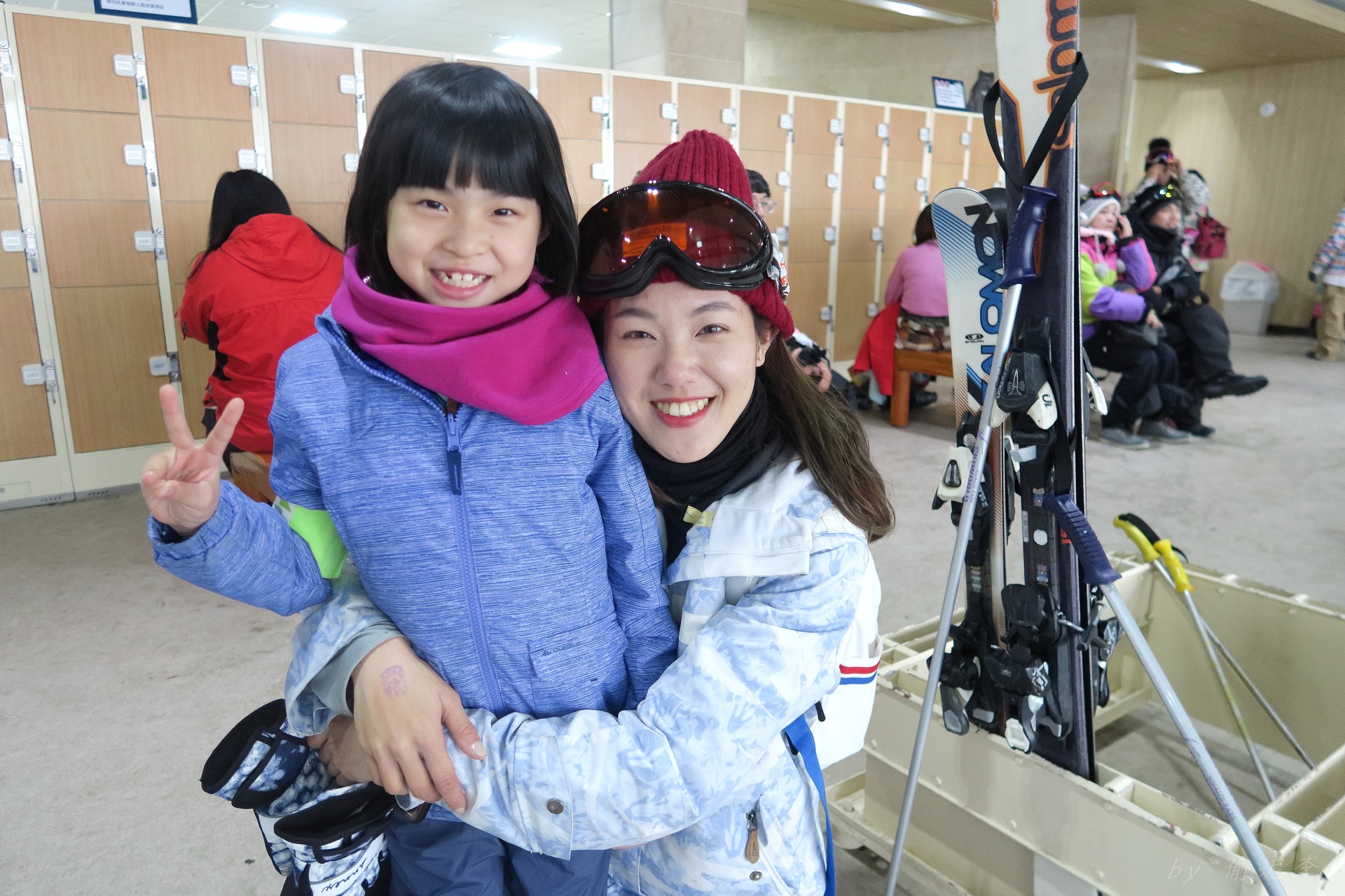 韓國自助旅遊的第二天安排到洪川大明滑雪一天 去年租了裝備直接讓小羊和淑惠上場,雖然會滑了 但感覺還有指導還是會比較好 比較KKDAY上的行程,有中文教練和沒中文教練差了500元台幣左右 有中文教練行程的比較早出發也比較早回來 回來還可以在明洞吃個飯小逛一下 就決定選有中文教練的啦~(雖然友人說...其實帶團的助教其實也不太會滑...) 至於雪場,洪川大明滑雪場是首爾附近比較大的 但到了現場才發覺也挺小的~比前年去的雫石還小的多~ 其它像龍平滑雪場或江原道 High One 雪場 光單趟交通時間就要3小時以上 若選這裡,我應該會被淑惠給捏死~ 且是初學,就近滑滑就好~ 07:00 明洞站 2 號出口集合出發 ,上車後服務人員和教練就先發給大家一個飯糰和礦泉水 車程時間約1個小時 我們先來到一個小店換裝~ 小店不大,看起來衣服也都舊舊的 若沒有準備的人還是換一下好 二個小孩我都有買迪卡儂的防水雪衣補給他們,所以都不用換 不過為了怕冷和安全起見,二個都租了一頂安全帽,一頂要10000韓元,很普通的帽子,我是覺得小貴XD 而我自己是全套衣服、帽子和雪鏡都是自己的,畢竟還是穿自己的乾淨舒服~ 到了雪場依身高和腳大小來借滑雪用具~ 至手後,感覺是很廉價的雪具XDD 因為人數不少,等大家都上雪場後也將近11點 教練很認真的講解~ 從雪具到走路、跌倒..如何站起來,重心該在那都很認真的示範說明 小羊妹也很快的就上手 大家試滑一二次後,助教就帶著大家上纜車去 這初學者的纜車很慢...比日本慢的多 加上SKI下纜車也比較穩,大家下纜車都沒什麼問題 教練再講解一下要如何用A字剎下坡..和S型轉彎.. A~~時間就快下午一點了!! 練習完初學者雪道兩趟後就下課放風 我趕緊先帶大家去吃飯 再回到雪場都已經2點多~ 要趕緊把握時間上纜車練習~ 但因淑惠還有些怕怕的 所以她就帶著妹妹繼續在初學者雪道練習 而我帶著小羊去綠線試滑 不過沒想到下午人爆多,綠線一排至少要20分鐘... 我們只剩一個多小時就要集合.. 若是這樣只能滑二趟... 綠線一趟下來不用5分鐘~(很短) 我決定轉往人少一點的橘線(中級雪道) 人少一點還是要排個快10分鐘左右,但至少比綠線好~ 這中級雪道果然比綠線陡不少也長了一倍 初滑SKI就上中級雪道,我的A字剎感覺有些不夠力~ 中間腿力不足,撐不住而失速後就滾了二圈~ 這SKI沒SB落葉飄可以玩,遇到陡坡真的差很多~ 一趟下來後雖然大腿很痠,但還有時間再滑一趟 就趕緊再去排隊... 老實說下午只滑了三趟真的不太過癮 但時間到了也沒辦法了 此次心得嘛 1.SKI初學真的比SB簡單,相對來說比較不會摔,當初學SB真的是摔到不要不要... 2.SKI沒落葉飄,遇到陡坡基本功又不行時,真的剎不下來XD 3.洪川大明滑雪場應該是人造雪,但雪質我覺得還OK~ 4.應該是離首爾近,所以人太多,光排纜車就耗太時間 5.一日來回價格約2900台幣,若不要中文教練約2400,日本雪場纜車票+租借裝備約3000台幣,我會覺得去日本還是比較划算(以安比或雫石來比較,雪場大、租借的裝備較好,滑雪的人也比較少) 教練很認真的講鞋子..等裝備 兩個小孩聽的很專心 淑惠也換了一套雪衣 小羊完全老神在在 助教KIKI是台灣人,很熱心的幫妹妹和其它學員 妹妹站姿不錯~ 淑惠這次也比上次進步的多~ 有人指點還是不一樣 坐纜車囉!! 纜車下方是停車場,左邊就是初學者雪道!!! 下次要排綠線纜車,媽呀~這人也太多... 一趟下來後決定跳槽去中級雪道,旁邊是綠線纜車排隊人潮,真是嚇死人的多!!! 這邊的中級雪道不是紅線、藍線 是橘線.. 且很多BOARDER是抱著板子上纜車的~ 我旁邊就是抱著板子上纜車的~ 初上中級雪道,真的比綠線陡上不少.. 所以我的腿也有抖~~ 回程睡到不行的小羊~ 熱鬧的明洞區 明洞水餃是金佳映介紹的 光看店名覺得不怎樣 但實際走一趟 不過店內裝潢和口味 是我覺得下次若再來首爾可以再訪的店!!^___^
