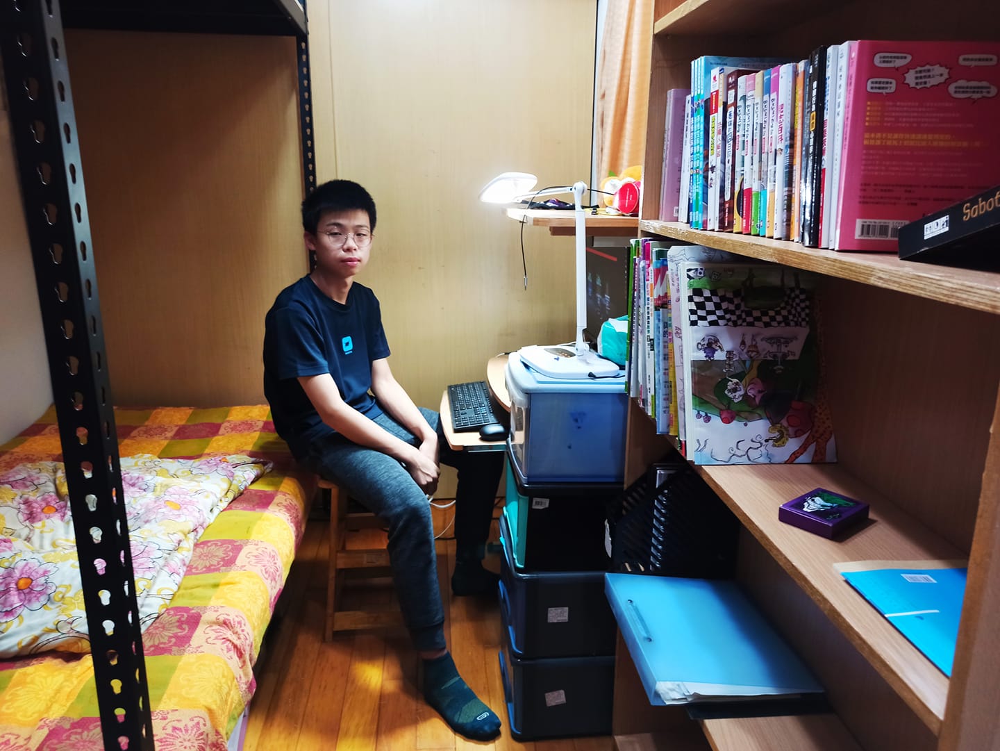 另一邊擺張舊電腦桌和今天阿公完成的書架,