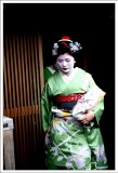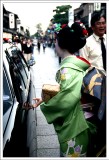 | 離開八阪神社來到祇園附近最有名的花見小路,聽說這裡是最容易看到日本藝妓的地方,來到京都當然希望一睹藝妓的真面目,走著走著就看到二位阿伯拿著相機在某店前守侯著,而店門口還停放了一台計程車,一開始還不知道什麼一回事,忽然就恍然大悟,這就是藝妓要出門表演啦,果然沒多久就看到藝妓從一旁走出來,動作迅速的坐進計程車就走了,啥..就這麼驚鴻一撇,再加上藝妓怎麼沒有想像中漂亮,心中實在是有不小的失落啊>"< |