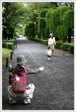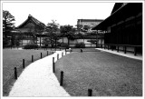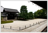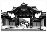 | 今天的第一站是二條城,雖然未來的行程還有更宏偉的大阪城和?路城,但是我們還是決定來看看。一進城之後就看到一座唐破風造的雕花大門,可惜今天又是下雨天,無法拍出那金碧輝煌的樣子。接下來參觀的二之丸御殿是這次日本行中覺得最棒的宮殿,裡面有條著名的「鶯張走廊」,走在上面時會發出類似鶯啼的聲響,相當好聽,據說這是當年為了防止刺客入侵的自動通報機關,不過二之丸御殿內並不能拍照,相當可惜,至於其它就是日式庭園,說真的,我實在是不會看,所以很快就順著小路就一直逛出來了@_@。 |