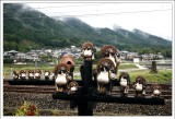| 再來我們坐JR到馬堀站,再走路去龜岡站去搭小火車。老實說這段小火車之旅的風景我覺得還好,感覺有點像太平山的蹦蹦車,不過我還是拍了很多紀念照,既然來了嘛,就想開一點囉!!^+++++^ |