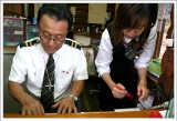 而出城前看到一位穿著浴衣的可愛美眉,不禁又上前詢問是否可以拍照,她點點頭之後馬上撥撥頭髮做出職業性的笑容讓我拍了幾張!!真是卡哇依啊^___^ |