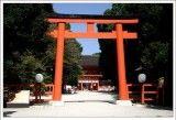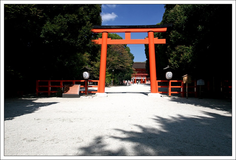 下一站我們要到下鴨神社,離京都御所沒有很遠,但因為我們有買公車一日券,所以轉了二班公車輕鬆扺達,充份利用我們的一日券 ^++^ 。下鴨神社是一個很古老的神社,一走進裡面就感受到不大一樣的氣氛,而神社中也剛好有一場小小的儀式,不過出發前小紅莓姐姐有交待神社內有些人是不能亂照,所以 Tony 只好把相機對準其它的地方。書上說下鴨神社前方的森林步道很值得一走,不知是不是這天天氣太好,還是楓葉未紅,和老婆就信步而過,沒有太多的特別感覺 ( 感覺是自己好像太龜毛了 =.=”) ,反而覺得坐在神社內吹著涼涼的風,看著藍藍的天別有一番風味。 |