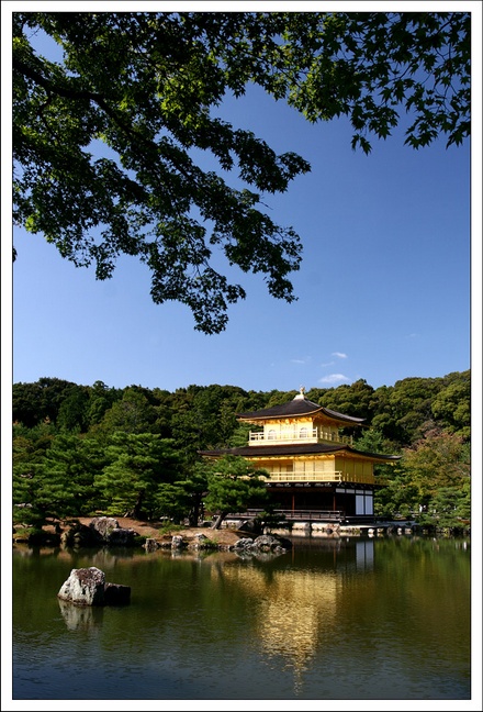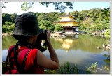 下一站我們來到人氣之寺 -- 金閣寺,還在門口就遇上滿滿的遊客,拿錢買了二張門票,門票的樣子就是老婆手裡拿著二張像符一般的東東 =.= 。一進門沒多久就可以看到金光閃閃的金閣寺,遊客可真是爭相拍照,想要找個好位置拍都得排隊,今天天氣剛好是個大晴天,金閣寺在太陽光下顯得格外耀眼,不過拍來拍去還是差不多的構圖,只好收起相機循著小徑繼續往下走,來到販賣紀念品的小販前看看明信片中的金閣寺是如何拍,除了雪景、紅葉是我拍不出來的,那左看右看,為什麼明信片中的場景我拍不出來呢,再仔細一看,原來拍攝點是在管制範圍內,難怪我拍不出來,哇咧 ~~ 實在是有夠機車啦 >”<( 那時真有股衝動想跑進管制區內,不過遊客太多,又不想讓台灣蒙羞,想想還是做罷 ) 。 |