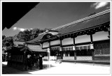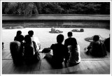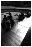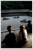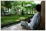 結束了金閣寺之旅二姐和姐夫的朋友決定先前往大阪,而時間尚早,我和淑惠決定再逛一個點再前往大阪和她們會合。而地點我們就選擇旅遊書上推薦擁有最棒枯山水庭園的龍安寺。我知道我一定看不懂枯山水庭園,但來到京都了,就來感受一下吧,就當找個地方坐著休息也好。而龍安寺果然沒讓我們失望,面對著枯山水庭園心中雖然沒有什麼想法,不過和一排遊客靜靜的坐在那觀想是一件很有趣的事,而坐在庭園一旁陰涼的走廊,舒服的令人想睡覺。回台之後,我一直和姐夫說他們沒去龍安寺實在是太可惜了。 |
