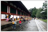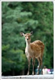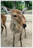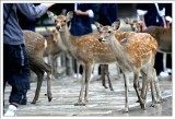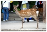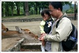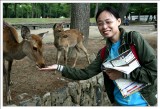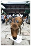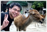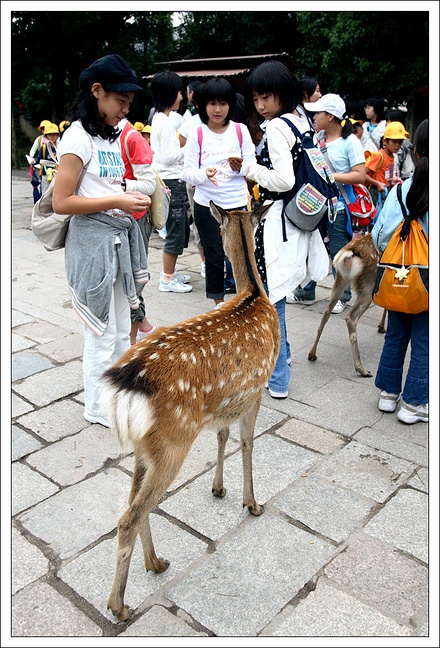 | 從路口走到山門,我們就走了近30分鐘,可愛的小鹿和一旁店家賣的小鹿吊飾就讓我們逗留好久,不知道可以直接接觸的小鹿魅力這麼大,那種感覺真是難以形容。不過小鹿然可愛,也有OOXX的時侯,有些比較大的公鹿要不到東西吃就會用頭頂你屁屁,雖然不會痛,但都會被嚇一跳=_=",另外一隻更誇張,搶不到食物就把我的奈良地圖直接吃掉了,搶都搶不回來,我不是心疼我的地圖掉了,我是怕牠吃子腸胃不要拉肚子就好=_="。 |