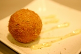 鮭魚炸飯團。小小飯團肉一小片一小片鮭魚絲,油炸過卻不油膩!!好吃好吃!!