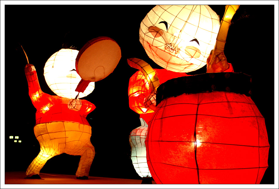 在主燈後面是學生比賽區,比起外圍的廠商區,比賽區一直我最喜歡看的,不知是不是豬年的造型特別好發揮,今年的得獎作品顯得相當活發,除了豬之外,下面這張小朋友提燈籠的花燈顯得超喜感,還有最下方的花動戰士都是相當棒的花燈,而西遊記與王建民的花燈也都有...,比賽區的作品沒有非常多,但也讓我看心滿意足的回家去了!!^__________^ |