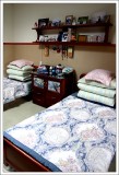 單身的住單身宿舍,有結婚的宿舍稍大一些,房間內有衛浴設備,桌子、床 和衣櫃...等生活用品一應俱全,而床邊和浴室內分別有 緊急救援按鈴,可讓老人家臨時有狀況時能得到快速的救援,另外走廊也相當大,可供二台電動同時併行,電梯的按鈕也是凸出式,方便老人家去按....,而一二樓是重症病患住院區,若老人家生重病或是有無法自行照顧自己身體的時侯就可以在那得到妥善的照顧...,在那遇見幾位病友,都對那的居住環境相當滿意...當然也可能有不滿意的,但我們那天並沒有遇到..