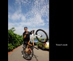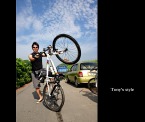 星期六stone本要發起一個輕鬆團,希望能吸引更多的同好一起參加,不然每次都要上山拚老命,那成員就永遠只有我們這幾個..,不過這個活動最後還是無疾而終,一方面是stone自己要和una去宜蘭玩,一方面好像沒有人要來參加(我們這團真的有那麼操嗎??=.=") 沒有stone團,但iyuan說約好和朋友小指要一起騎河濱,嗯~河濱是超輕鬆路線,早上六點集口在水博館門口集上,從福和橋下的水門進入河濱自行車道,一路延著河岸騎,沒有太大的上下坡,也沒有大太陽,騎起來還真是愜意。回到家附近才不過九點,大家還可以一起去吃早餐,真是輕鬆大成功!!^O^