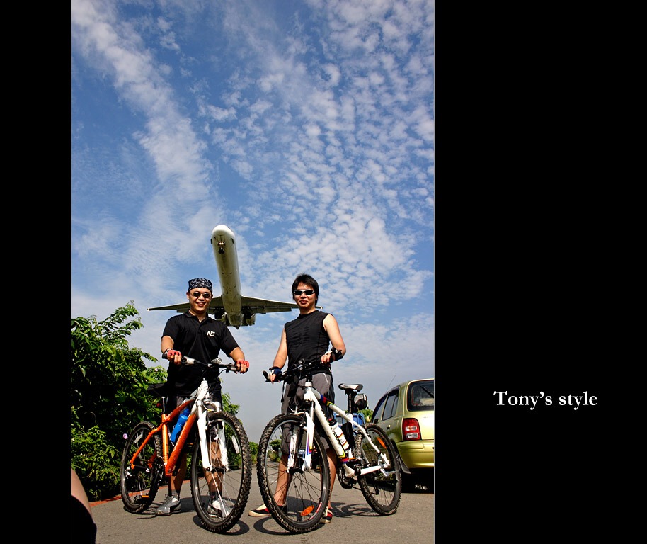從大佳河濱公園的水門出來我們還特地繞去松山機場那拍飛機,不過時間太早,等了十分鐘好不容易來了一台飛機,我..卻沒有把握好,300D的連拍差一張,再一張的時間,飛機的位置就很完美了T_T。而下一台飛機又不知何時才會再來,近九點的太陽已有些毒辣,我們決定留點遺憾,下次再來T_T。
