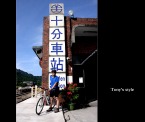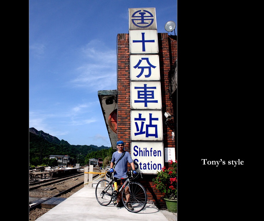 既然騎咖搭掐上來的,那當然要和大大十分車站招牌拍一張囉!!^^,另外當我們到達十分時,聽說PETER已抵達平溪,看來他為了追我們真是一路衝上來的,真是太猛了=.=