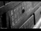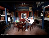 到達菁寮後,HOHER首先帶我前往金德興藥鋪,也稱阮家古厝。這棟古厝為清朝乾隆時期所建,距離目前約有240年了,而這棟原本是位於嘉義縣鹿草鄉頂潭村,為林家旺族所有,後因家道中落而賣給了後壁的許遷。許遷於1910年用拆遷技術把它遷來現址,後來阮氏用足以買下三甲良田的資金再買下這棟古厝。 原本剛來到菁寮時,阮家古厝的大門並沒有開,但主人阮老先生看我們二個拿著單眼相機一直望著古厝,就開門歡迎我們進去,阮老先生說之前本來一直不同意讓縣政府把這裡訂為古蹟,因為古蹟法規定自己不能改建或維修,這點會有些麻煩,但後來又怕不小心出一個不肖子孫不重視這祖先遺留下來的財產,想想還是交給政府的好,不過規劃成古蹟的阮家古厝目前還是由阮老先先自己看管,他請我們隨意拍照,自己愜意坐在客廳看報紙,那是一種很奇妙的感覺,但詞窮的我卻形容不出來...