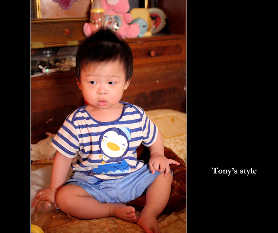 2008 五月,李小羊八個多月大...,愈來愈口愛^O^ 李小羊出生後收到許叔叔阿姨買夏天的衣服,不過那時太小都不能穿,今年四月天氣慢慢轉暖,趕緊把大家的衣服翻出來...,哈哈~~看起來很小件的衣服,原來都不會穿不下耶,穿起來拍照給叔叔阿姨看看!!^+++++++++^