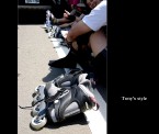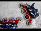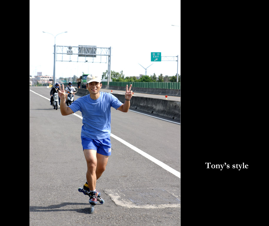 這天的距離約90KM,雖然很久沒溜了,但心想若慢慢溜應該還OK,沒想到上路後不是這麼一回事,西濱的風超大,再加上到苗栗前一堆上坡,溜到很想罵三字經XD,還有我新的溜冰鞋不是很合腳,還沒到通霄前二隻腳裸旁都已磨破皮,而大腿也瀕臨抽筋,看到學弟永龍開著車出現在一旁,二話不說馬上拋棄自尊心--上車,上車後吹著冷氣,真是天堂與地獄的差別~~