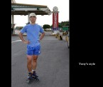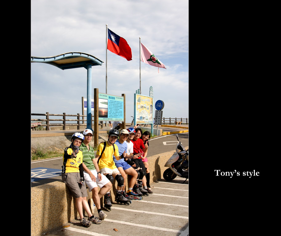 所以下午的行程我就擔任司機OR攝影師,這二個之前覺得會無聊的身份那時都覺得比在大太陽下溜直排輪的好,不過做事總是要有「始」有「終」,所以最後剩12公里處我又下車陪啟村溜了最後一段,真是累死我了XD