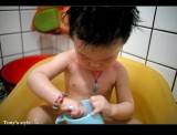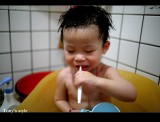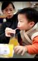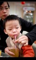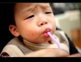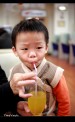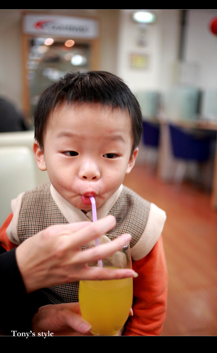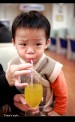 | 上台北前先到TOYOTA去換個雨刷,沒想到在客戶休息室還有免費的果汁可以喝,為了不讓李小羊喝太多,老婆把吸管用力捏緊不管他一次吸太多,沒想到李小羊就死命的吸,那表情真是超好笑的^^ |