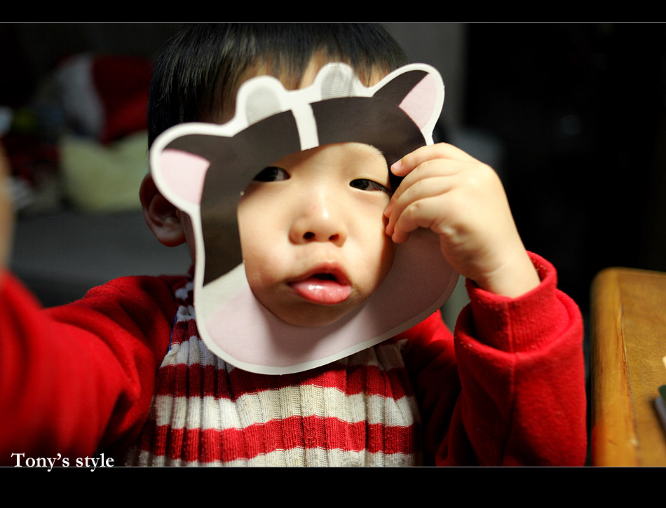 老婆訂閱給小羊看的巧虎童書在四月份送了這個牛牛面具,小羊拿了就開心的戴起來。加上那翹翹的嘴巴真是笑死我了^^