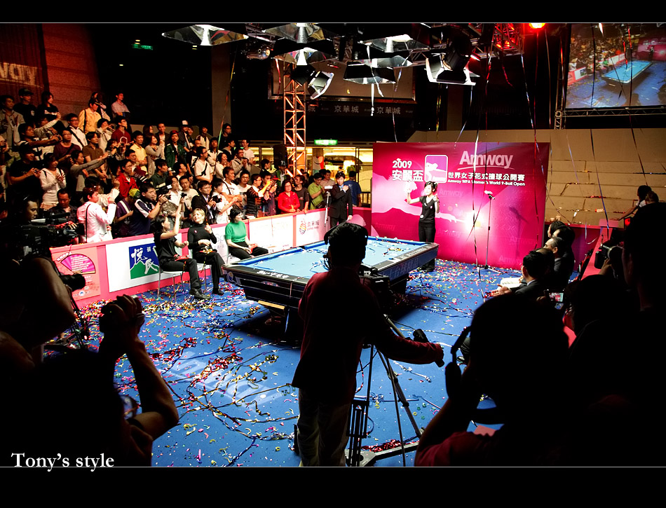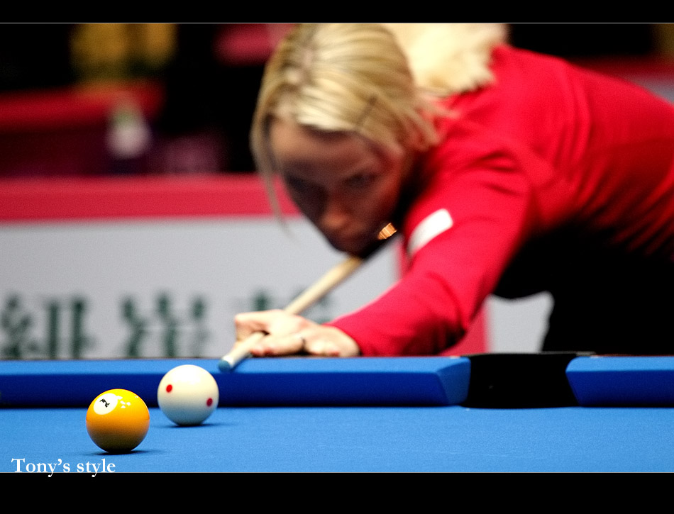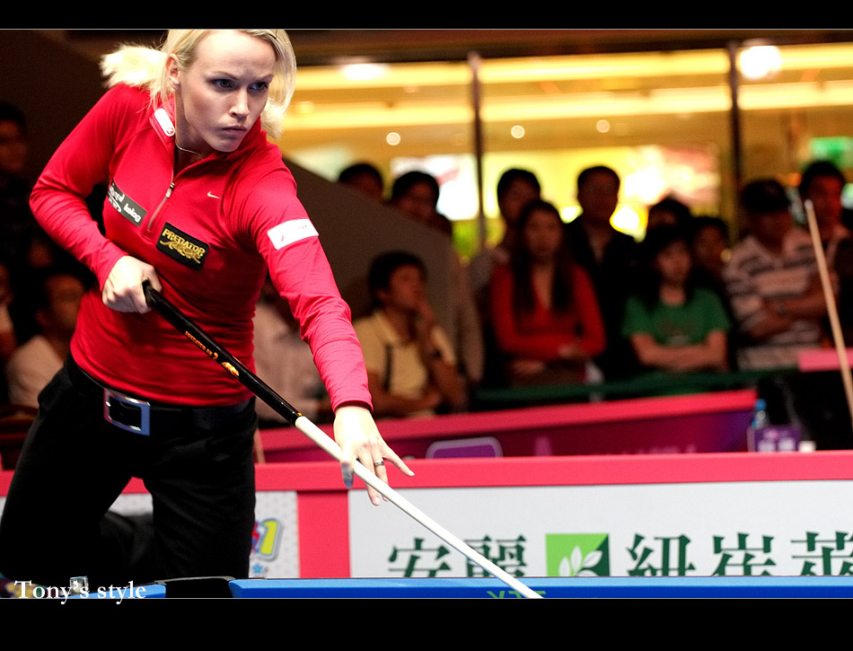 又到了一年一度的安麗盃世界女子撞球公開賽,我一年就看這一場有美女又有球技的撞球比賽,今年參加的選手非常的多,除了老面孔Allison Fisher 艾莉森•費雪、黑寡婦 -- Jeanette Lee 珍娜•李,Kelly Fisher 凱莉•費雪,金佳映、Rubilen Amit 盧比倫•艾咪、Jasmin Ouschan 茉莉•歐斯純、Gerda Hofstatter 葛達•赫斯達特、大井由希子(今年為濱西由希子,但嫁人後冠夫姓就成了大井由希子)之外,去年沒出席的Karen Corr 卡倫.高爾和2007年冠軍潘曉婷今年都有出賽,所以賽前就知道今年的戰況一定十分激烈~