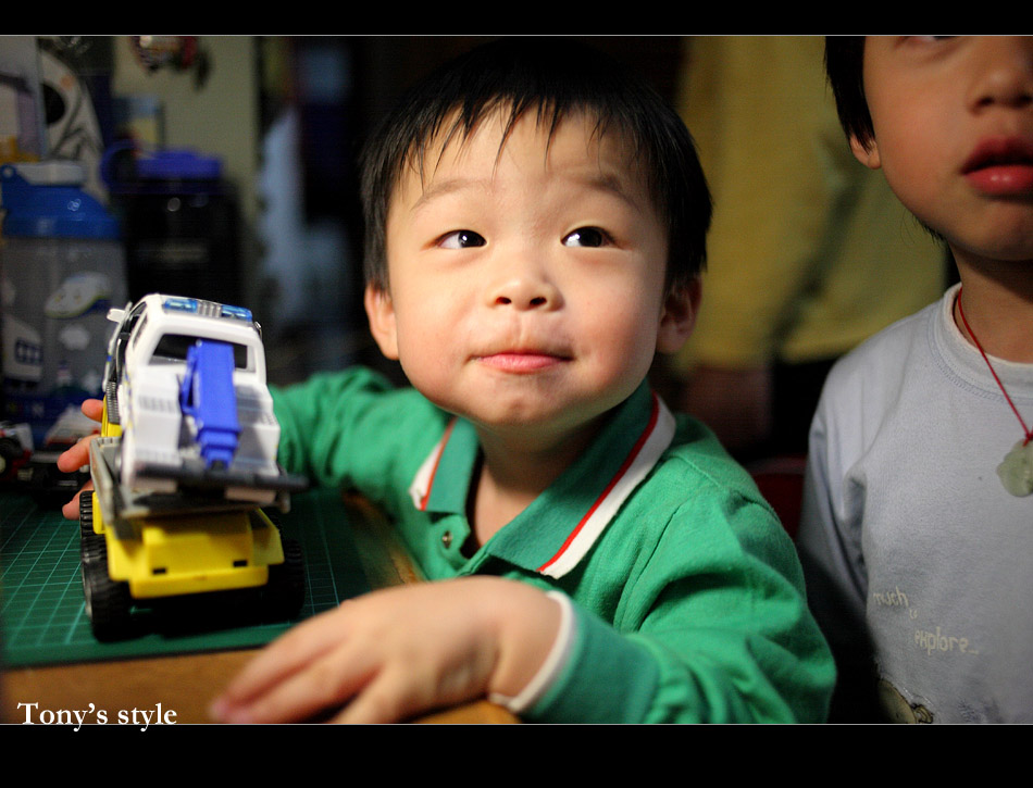 正在想...回台灣時,要去那買各種車給他玩說..呵...