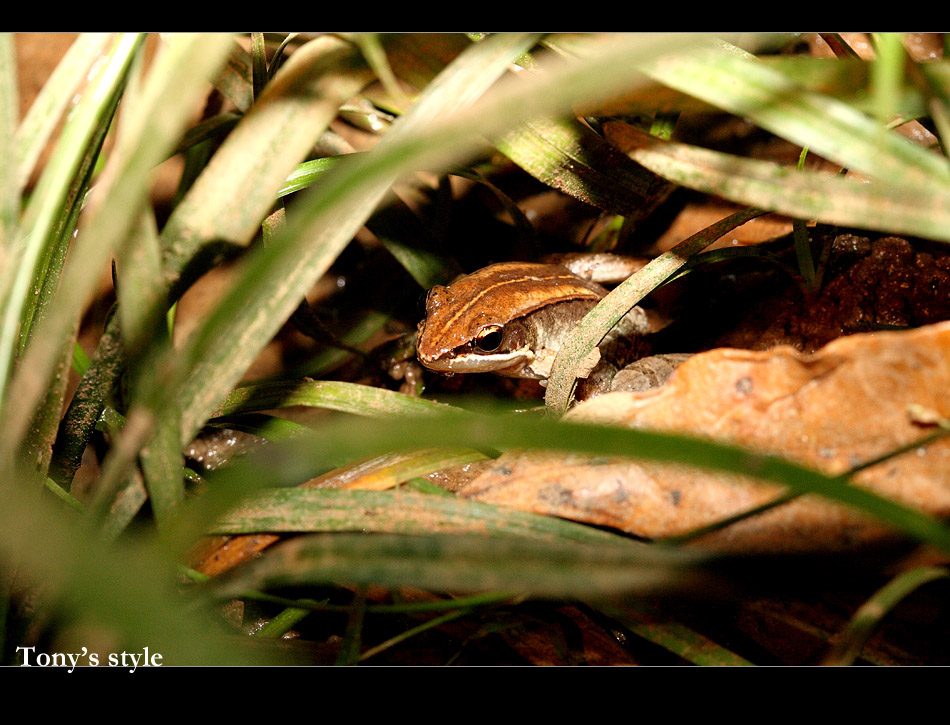 這幾天都沒下雨,在出發前實在有些擔心會有找不到蛙的窘況,不過也不是每種青蛙就喜歡雨天,像腹斑蛙據我和小勛觀察的結果,乾燥的天氣時反而會比雨天時叫的勤快,那豎琴蛙呢??小勛說也不會差太多...