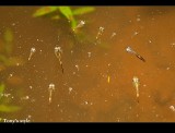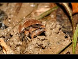 走到水池旁豎琴蛙的叫聲此起彼落好不熱鬧,待WINSUN先錄音之後,大家開始去找蛙,豎琴蛙長和腹斑蛙真的很像,不過體型小很多,另外吻端不像腹斑那麼尖,皮膚相對上也較平滑..,所以當我找到第一隻「疑似」豎琴蛙時...,趕緊請HO董來鑑定一下,沒想到就賓果了^O^,終於讓我看到拍到豎琴蛙了...,只是沒想到奇貌不揚的他能發出這麼美妙的聲音...