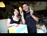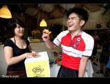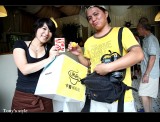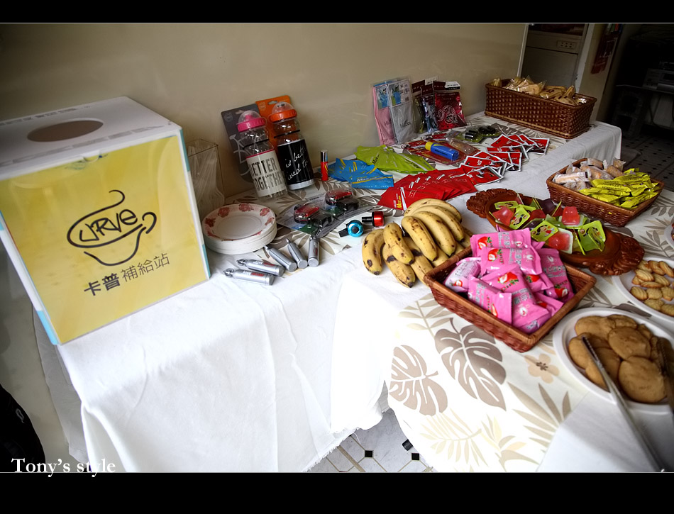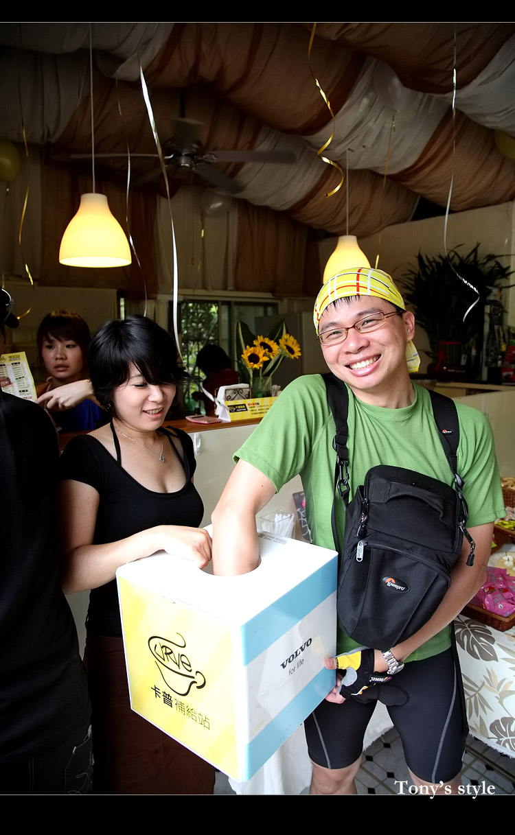 今天週年慶卡普還特地推出滿百就可以抽獎的活動,我們這行消費了700多元有七次的抽獎機會,本來目標最大獎 -- 單車水壺(因為我目前都沒有買水壺XD),結果大家都只有抽中SHOOTER贊助的商品~~厚!!實在是太遜了>"<,最後RUBY載著AMY上山,一抽就中了第一獎水壺...,果然是有「大寶」加持有差^^