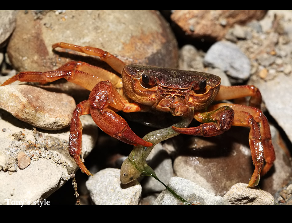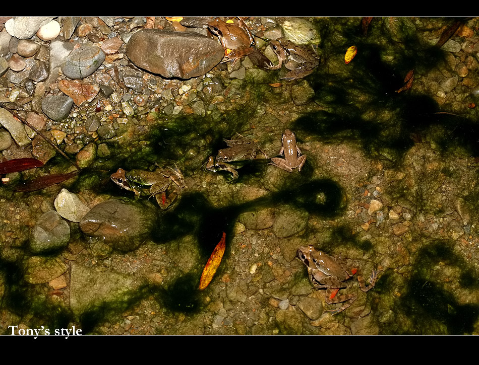 這天除了梭德之外還有一些小日本褐樹蛙,小勛說這是梭德還未大爆發,若是大爆發出現,那溪邊全是梭德的天下,溪底也到處可見梭德的蛋,再過一二週應該就很有機會看到了,10/18又要到豐原去拍婚宴,晚上若有空應該會再去看看,希望能看到傳說中的大爆發景像 ^++++++++^。