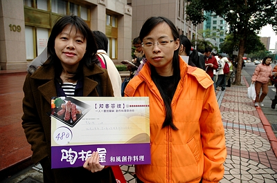 忘了那位好寄給我這個訊息--陶板屋發起送書到蘭嶼。只要在1/8號中午11:30-13:00間帶一本書到陶板屋就可以免費享用一客料理。若座位容不下也可拿到300元的折價券。 本想說那一定是人山人海的。就有點興趣缺缺。不過美食主義的桂芳二姐可就顯得相當積極!! 8號早上11點,二姐就來通知我們去排隊啦!!不過我們這麼晚去一定是排不到免費的餐。但是300元折價券還是很誘人的。嗯~~現場果然不少人。大概有100公尺遠!!嗯~~很幸運的排沒有多久就拿到折價券了!! 中午姐夫就請我們去吃泰國料理!!哇哈哈~~果然要吃吃喝喝,跟著姐夫就對啦~~^o^ 外部連結