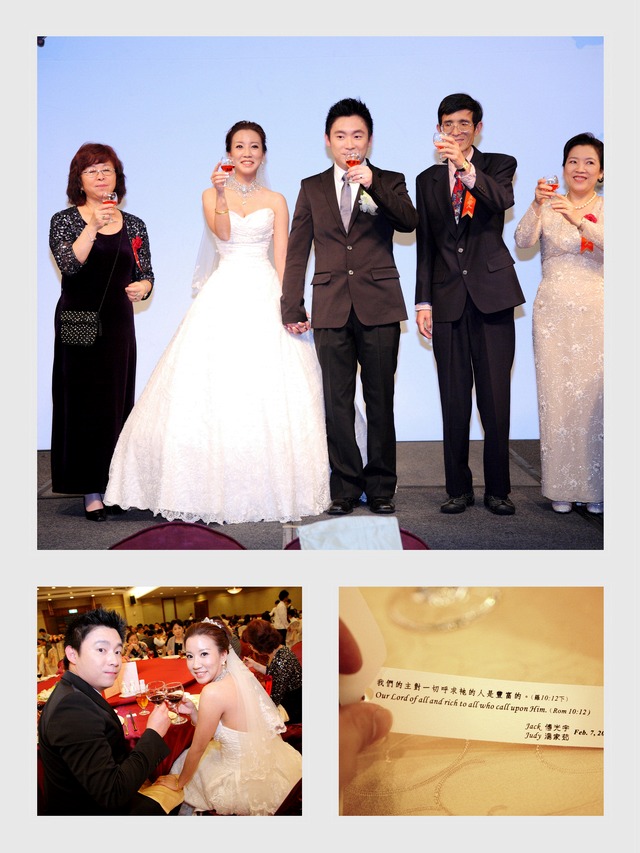 Judy 是美女馨亞的好姐妹..,所以託我幫忙拍這場婚禮.. 這也是我第一次接這麼遠的CASE -- 喜宴的地點在高雄85大樓! 不過和Jack、Judy比起來,我根本不算遠.. 因為一個從加拿大回來,一個來大陸回來... 所以說這次真是個「隆重」的婚禮!! 幸福的小倆口在婚禮後馬上就飛到馬爾地夫去渡蜜月 週日就飛回加拿大去,我也趕在最後一天將婚禮的光碟照和精裝相本書拿給他們! 希望他們會喜歡也祝福二位甜甜蜜蜜、長長久久!!^___^