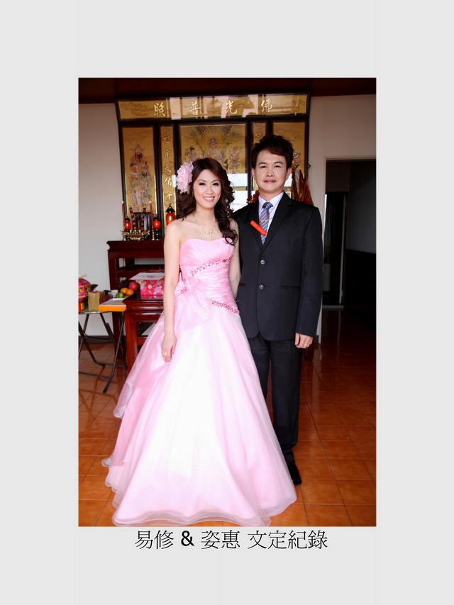 新娘姿惠是愛蜜莉阿姨的女兒.. 因為和愛蜜莉妹妹韻茹的婚禮相隔沒有太遠 她們且對於上次來幫忙的相關人員也覺得不錯! 所以這次不管是婚攝、新祕甚至喜宴時的樂團都是原班人馬!! 當然~愛蜜莉這次一樣擔任大總召,有事不用問新娘,問她就對了~ 雖然這幾次都要從台北南下到豐原,開車比較辛苦些.. 但中南部的人情味真是滿滿滿..,讓人很窩心 真的是要感謝你們的照顧啦!!^___^