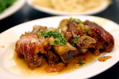這家是我在google上找到的,後來問問同事才知道這家在台北市是很有名的豬腳店啊!!一到了門口就看到有人在排隊買便當。而不大的店裡也幾乎是滿滿的。