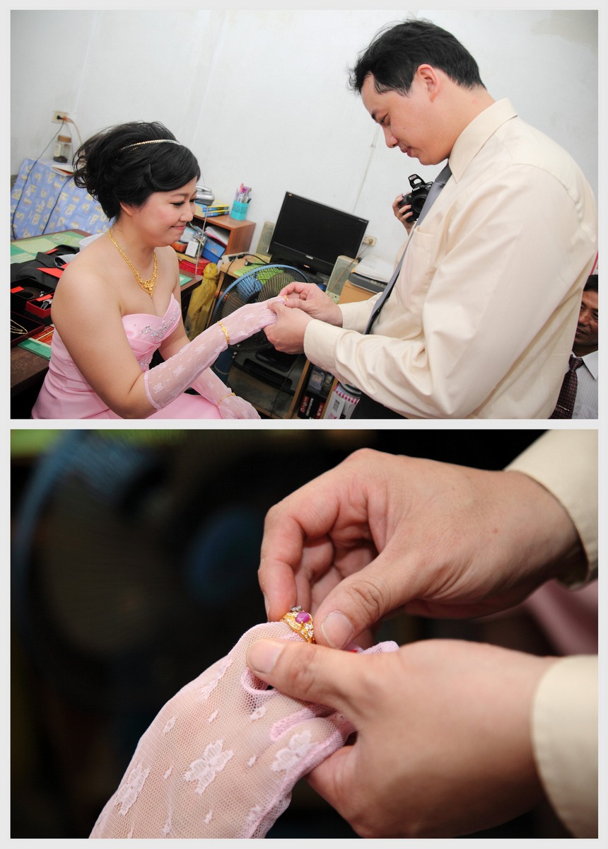 我的婚禮記錄並沒有在非常婚禮上做廣告 在我的blog上也不會特別提.. 所以每當有不認識的新娘留言詢問能否擔任婚禮記錄時,我都會好奇的問一下是從那找到我的.. 因為..我覺得這是一種緣份吧!!^___^ 慧茹(饅頭)是小妮的粉絲..,雖然幫小妮拍的那篇訂記錄已有點時間,不過還是被眼尖的饅頭給發現了.. 饅頭說一方面喜歡我拍的青蛙,一方面看我成功的拍攝了許多小妮的親友,因為想趁此機會多拍一些爸媽的照片,所以覺得我是最適合不過的人選.... 不過文定前她和我說她爸爸有點兇,請我自求多福...,那時我在想...一個要嫁女兒的父親會有多兇呢?? 依我拍攝幾次中南部的婚禮經驗,老人家通常都是不好意思被拍,大部份多聊一下,多盧幾次,老人家就會答應了^__^ 而饅頭的爸爸沒有想像中嚴肅,還和我閒聊說他年輕時也是拿底片機的,只是後來就沒有拍了...,而我也趁著和饅頭爸爸聊天、做事時拍了不少照片.. 昨天饅頭收到我寄過去的相本,打電話和我說她很喜歡...,她覺得這相本比婚紗照還有感覺,的確啊...這本記錄這一天的點點滴滴..,感謝饅頭給我這個機會去服務,也祝你們幸福、快樂!!^__^
