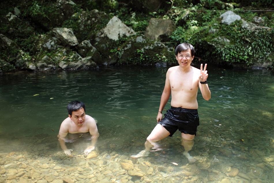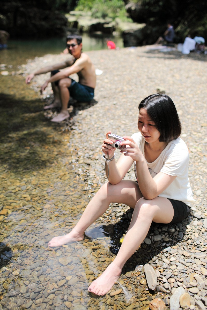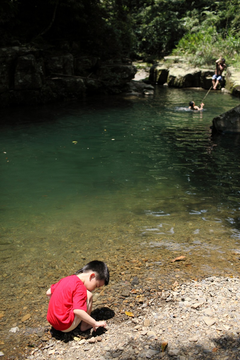 今年夏天特別熱,一看到JJ、小彤和紅小P泡在水裡的清涼照片,就馬上詢問為啥都沒糾.. 原來那天的照片是為了紅小P特別開辦的,6/12這週還有一團.. 當然就帶著老婆小孩參加啦~ 金瓜寮在那裡? 這個地名有聽過..就是不太清楚確實位置!! 經過小彤的介紹,這個美麗的小地方位於坪林附近.. 小羊目前還很怕水,只敢在岸邊丟小石頭..,這樣有好有壞啦~,至少不用太擔心安全的問題XD 這個點深的地方很深(大約有2-3米以上),也有淺的地方可以泡腳~~ PETER一直說他有胖..我直說看不出來.. 果然衣服一脫就露餡了XD 小彤美人魚出現... (這隻美人魚不會游泳XDDD) 猛男...(不是我的菜XD) 小彤的姐姐 還有水上盪秋千..很酷吧!!(辛苦下面的JJ..拚命推^^) 大合照再來一張 這裡因為封溪禁止釣魚,所以站在岸邊就可以看到許多魚... 這裡也有咖啡廳?? 是啊~這家沒有招牌的鄰長咖啡廳.. 沒有太寬敞的位置,但有的是一片好山好水好風景 夏天正熱,最近有空要多帶小羊來去泡泡水^O^