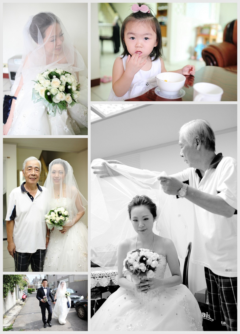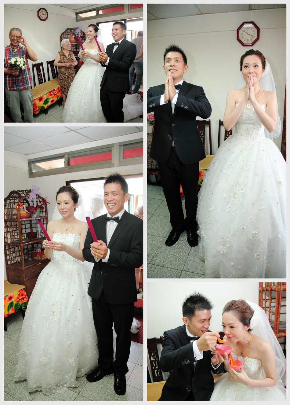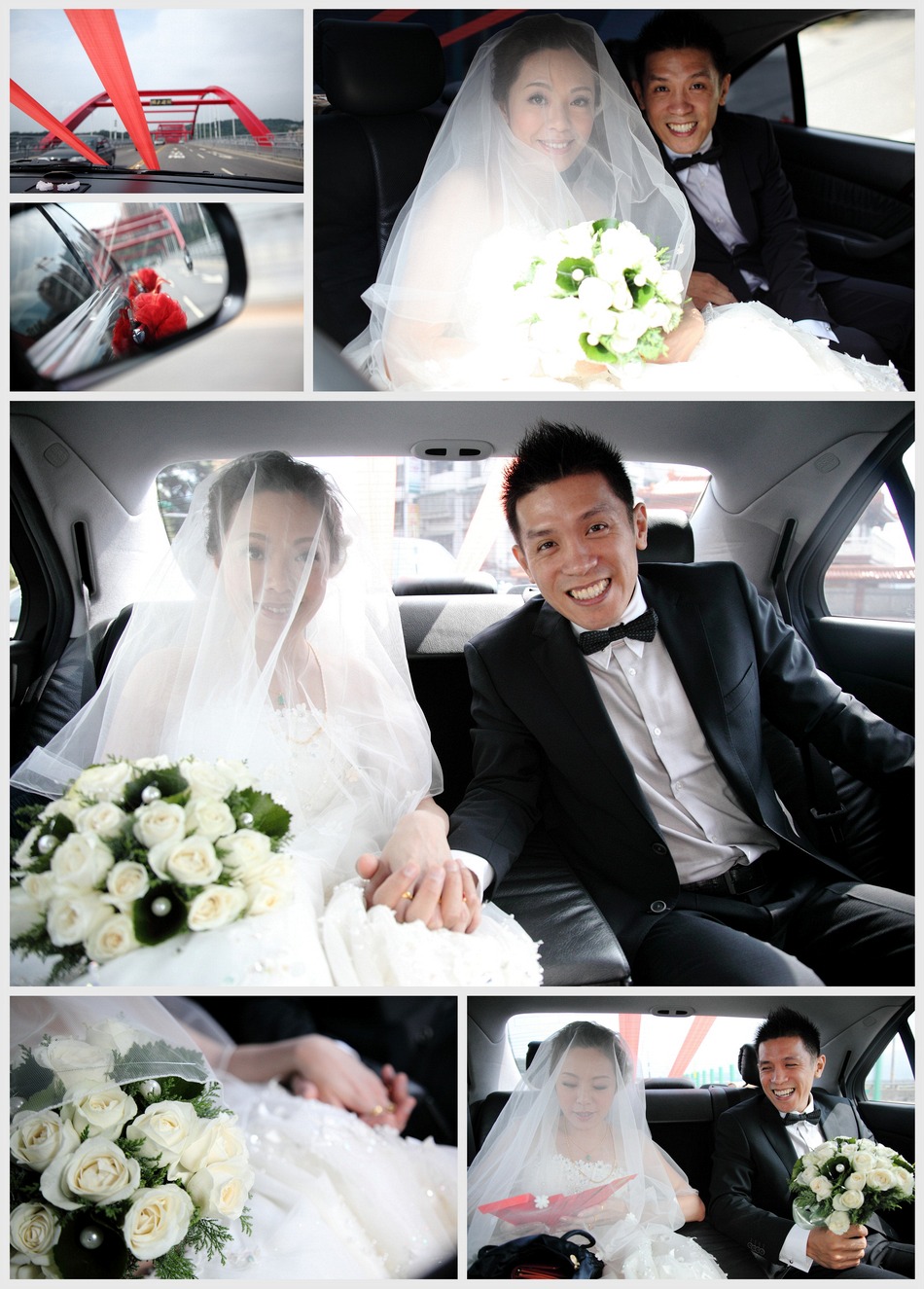 這場婚禮是有史以來看過儀示最簡單的婚禮了,一早新郎長宏坐著租來的禮車,連同司機大哥和我..就三個人前往新娘家去迎娶,沒有媒人也沒有伴郎的陪伴,而到了新娘家...也不見小朋友端著橘子或蘋果來開門,長宏自己下車..自己按電鈴.. 但婚禮就因此不隆重、不感人嗎?? 並沒有...雖然簡單,但看到二人幸福的笑容,我想這就是最棒的儀示吧!!^_____^
