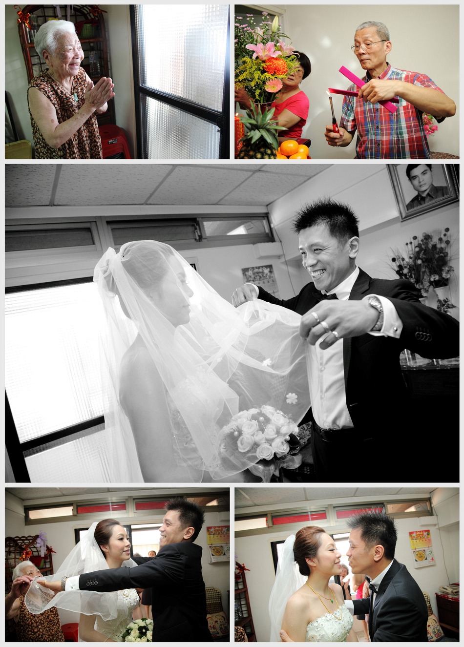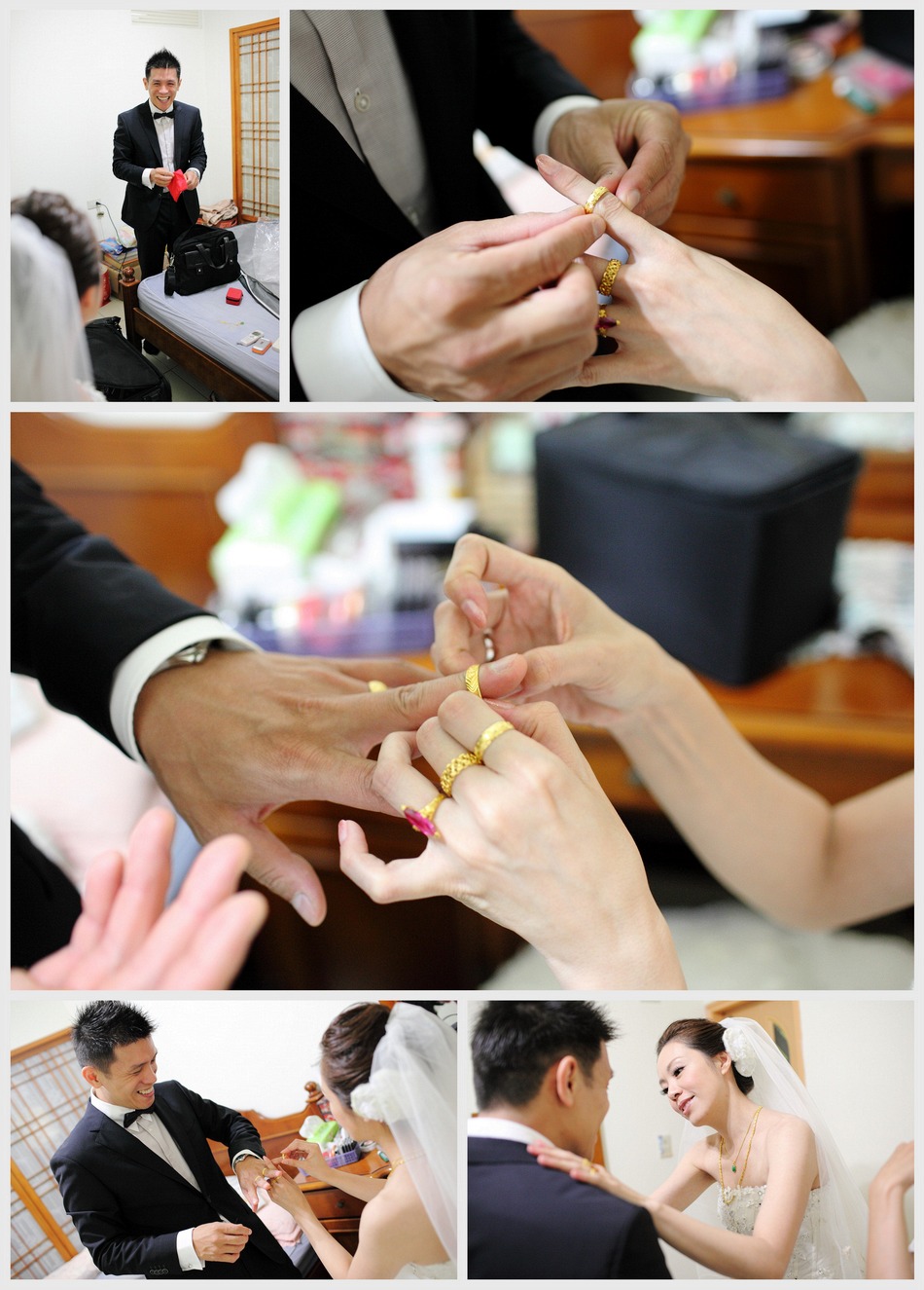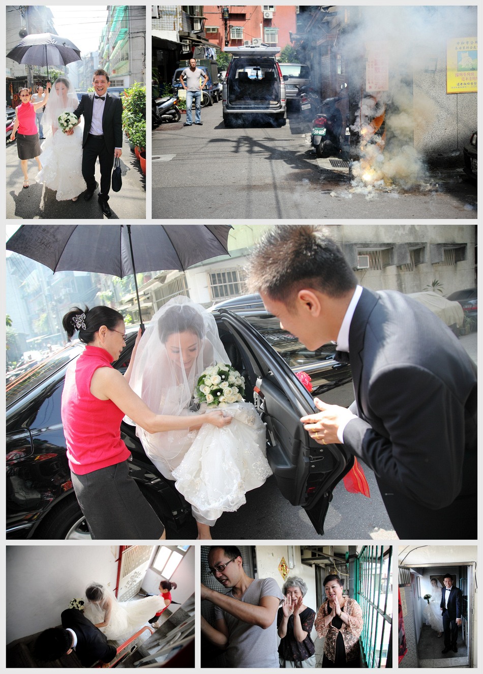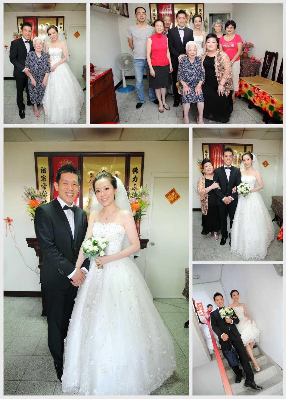這場婚禮是有史以來看過儀示最簡單的婚禮了,一早新郎長宏坐著租來的禮車,連同司機大哥和我..就三個人前往新娘家去迎娶,沒有媒人也沒有伴郎的陪伴,而到了新娘家...也不見小朋友端著橘子或蘋果來開門,長宏自己下車..自己按電鈴.. 但婚禮就因此不隆重、不感人嗎?? 並沒有...雖然簡單,但看到二人幸福的笑容,我想這就是最棒的儀示吧!!^_____^