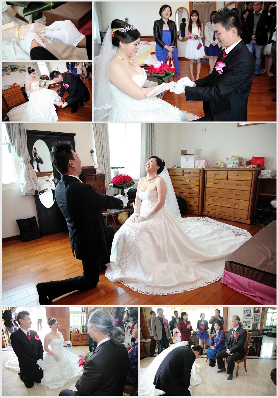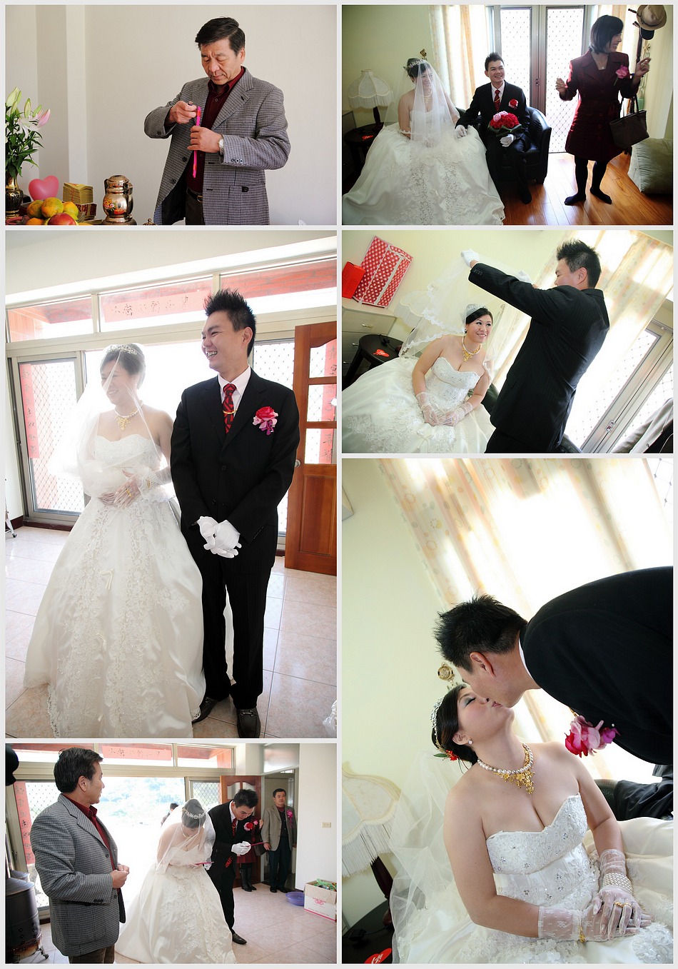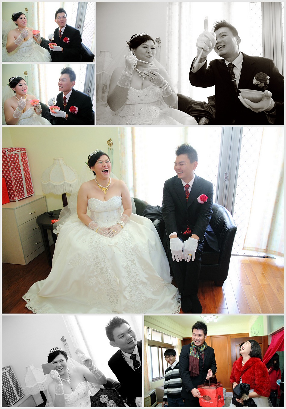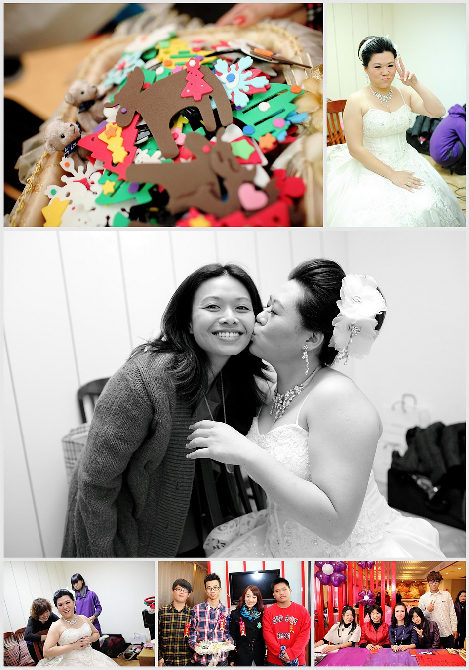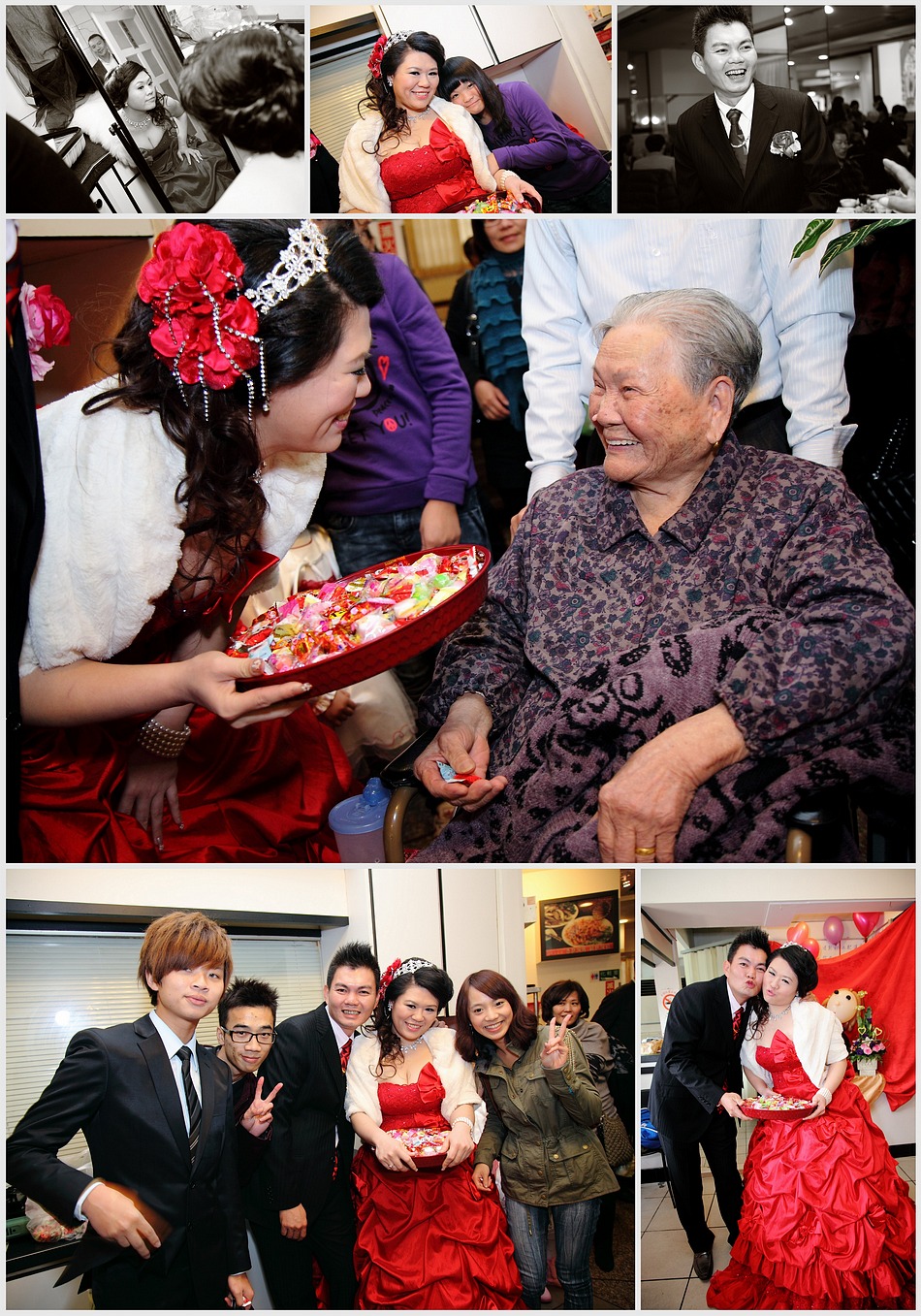 2009 EMILY email給我洽談婚禮攝影的事 談了許久,我也恭喜她.. 沒想到..新娘不是她而是她妹妹 但她幾乎總攬婚禮大小事,所以一切都找emily 而半年後朋友的女兒要出嫁,妹妹的工作人員..婚攝、新祕又是原班人馬出動! 而2011年底終於也輪到emily自己,當然...工作人員依然是原班人馬 連伴娘群也幾乎一樣^^ 而這場婚禮除了我之外,還有另一位專業攝影師LEE,老實說看到他的裝備和身手還真的讓我多少有些壓力,不過還好成品沒讓EMILY失望,她說看到LEE的照片會想哭,而看到我的照片會想笑,我想這就是風格的不同吧:P 最後祝福二位永遠笑口長開,幸福滿滿!!^____^