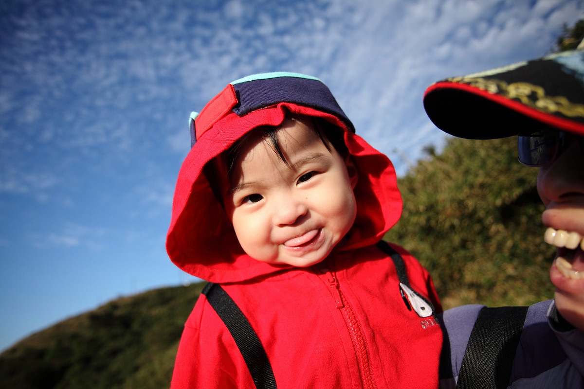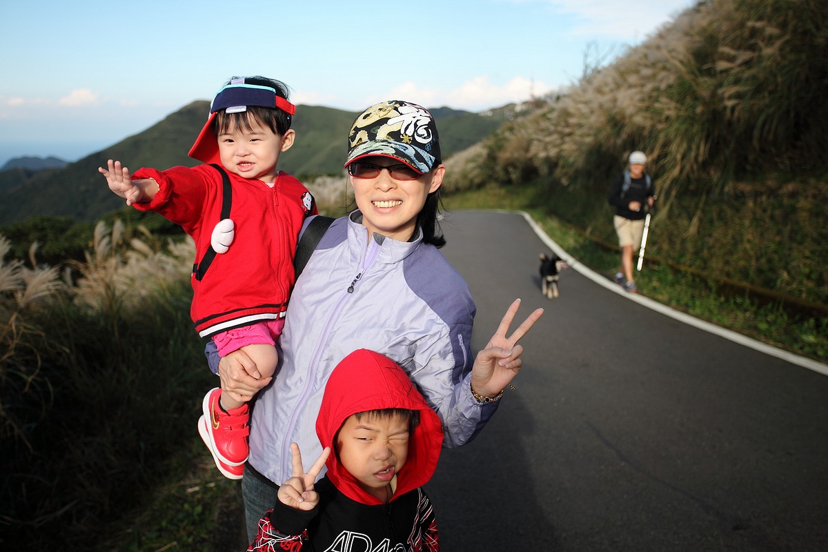 最近這幾週假日的天氣都還算不錯,不過常常只有早上好,下午就一付快下雨的感覺 唸著要上陽明山去走走唸了好幾個星期,這週總算如願~ 最近正值芒草季,網路上不時就有朋友po出大屯山的芒草 那就來去大屯山走走吧~ 車子還沒晃到文化大學...一家三口就在後頭呼呼大睡... 明明一大早起床去騎單車的是爸爸啊..= =" 還好出發前有先喝了一罐紅牛,還撐的住眼皮... 往大屯山助航站的車不少,我早早停在一公里外,抱著妹妹走上去 順便讓老婆和小羊運動一下 呼~~這幾年來總算是上來拍一次芒草了 因為上面風大太冷,對小小孩實在不好 所以不能等到日落時刻才離開,但能見到這一片風景也夠開心了 那二個小孩開心嗎?? 我想總比呆在家裡好吧 :)