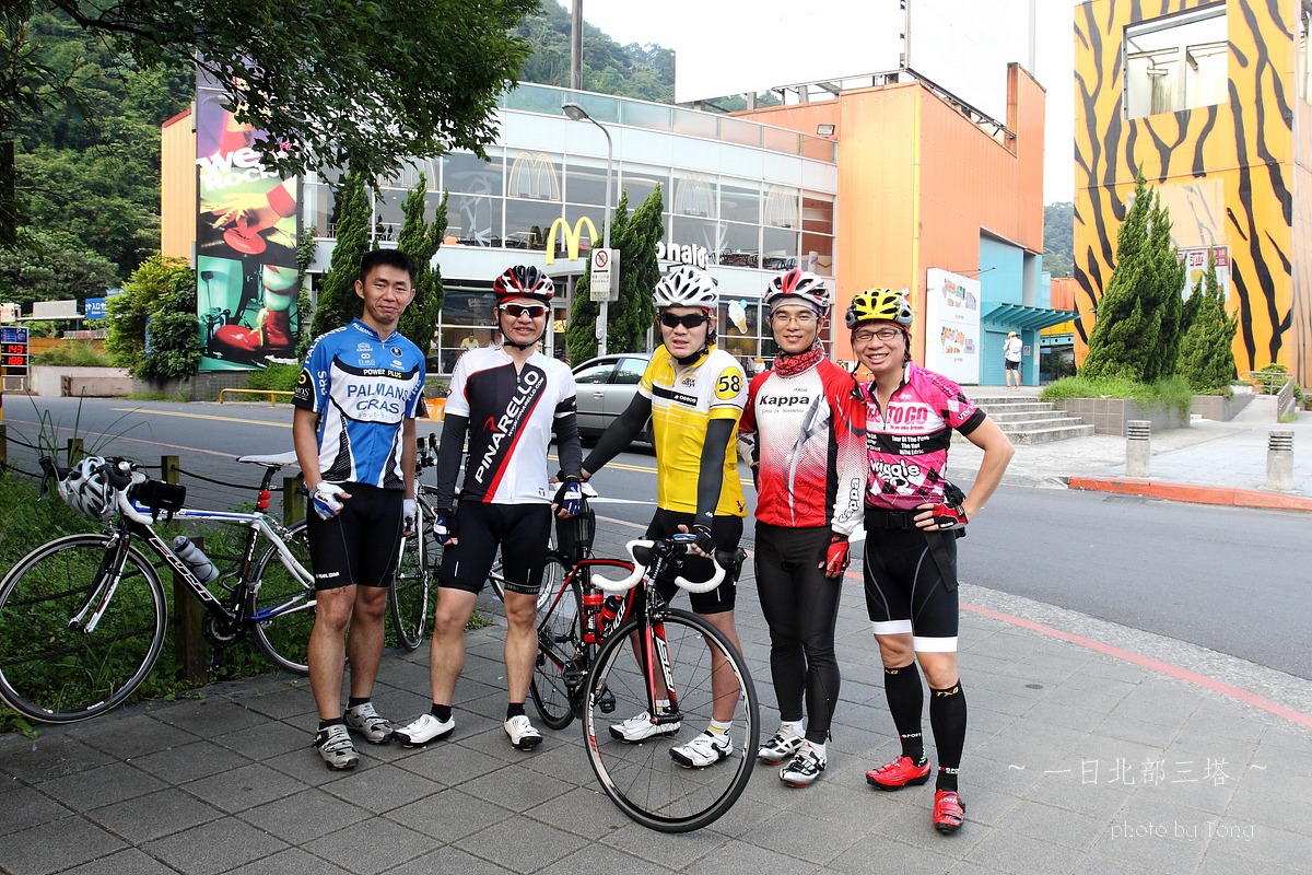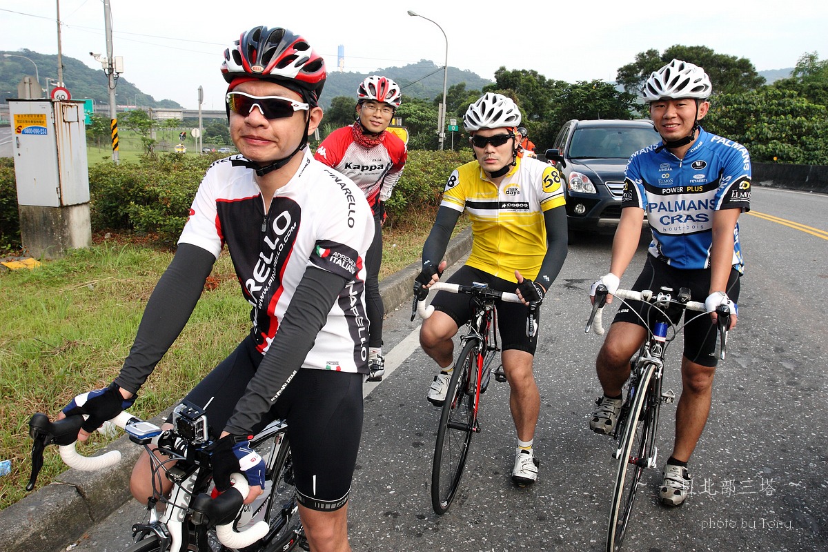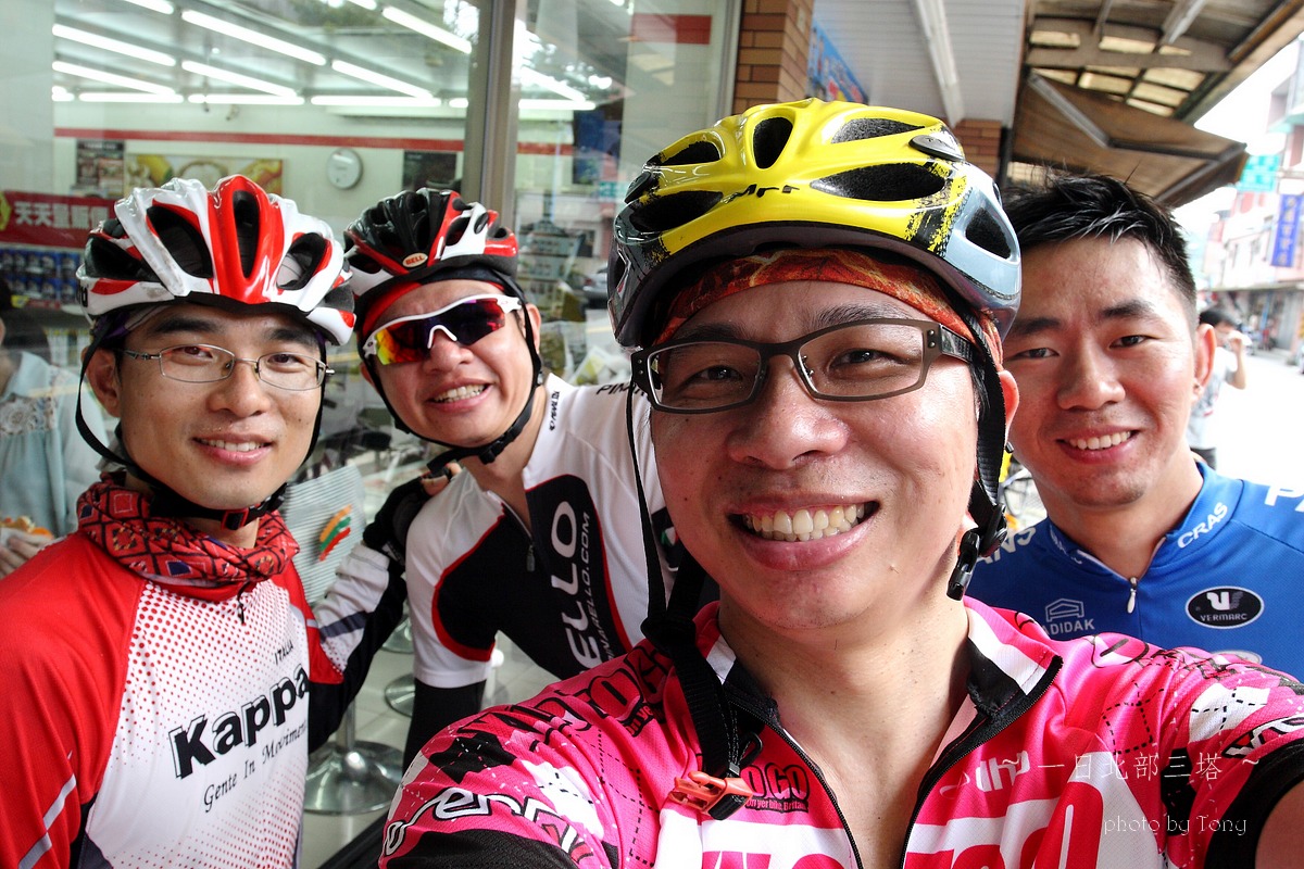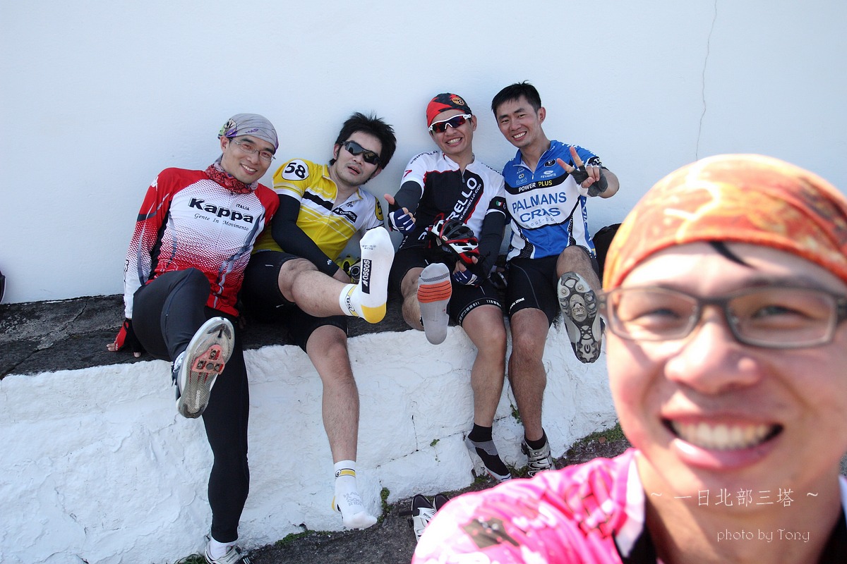 本來5月底6月初是石頭登山隊要上大小霸的日子,沒想到我老爸老媽突然說要出國去玩,那麼只好乖乖取消,老婆說我不是很想去嗎??但想到我四天不在家,老婆一個人要帶二個小的在家,我想我還是別去好了,那..不去四天,就來單車熱血一天好了~ 武嶺、一日雙北還是一日北部三塔、一日雙站(大屯山助航站+五分山氣象站)?? 一開始我和peter都傾向武嶺,但四五月的天氣實在太糟,頂多出門小繞一圈,里程數基乎都沒超過60km,這樣要去武嶺似乎會辛苦了點.. 好吧,看起來一日北部三塔似乎是相對上輕鬆的路線,只要一路上不爆衝加上好好休息很補給,應該是可以完成的~ gogogo~~ 參加人員:沒爬山一樣掛病號的stone隊長,買新車後就一直在家偷練的peter,年輕又愛跳的陳大鼓、完成226的鐵人啟村學長和怕抽筋的腿套Tony 預計行程表 06:30 動物園集合 06:40 (0K)動物園 --9.5KM-- 07:10 石碇 07:10 (9.5K)石碇 --19.1KM--08:10 十分車站 (靜安吊橋前集結,喝水) 08:10(28.6K)十分車站 --13.2KM-- 08:40 雙溪(第一次休息補給處,預計休息10-15分) 08:55(41.8K)雙溪 --20KM-- 09:45 三貂角(休息拍照,預計休息15分) 10:00(61.8K)三貂角 --7KM-- 10:20 福隆車站(吃便當??,預計休息20分) 10:50(68.8K)福隆車站 --18KM-- 11:35 鼻頭角(休息拍照,預計休息15分) 11:50(86.8K)鼻頭角 --21KM-- 12:40 基隆火車站(休息,預計休息10分) 12:50(107.8K)基隆火車站 --22KM-- 13:50 金山(休息,預計休息10分) 14:00(129.8K)金山 --17KM-- 14:50 富貴角(休息,預計休息30分) 15:20(146.8K)富貴角 --11KM-- 15:50 聖約翰大學(休息,預計休息10分) 16:00(157.8K) 聖約翰大學 --11KM-- 16:30 紅樹林捷運站 實際行程..當然是有所出入啦XDD,前半段控制的算還不錯 後來就...放牛吃草啦~ 06:00 STONE和陳大鼓來我家集合--8.14km-->動物園 06:54 動物園 --8.89KM-- 07:16 石碇 07:16 石碇 --19.31KM--08:01 十分車站 08:09 十分車站 --11.99KM-- 08:33 雙溪 08:55 雙溪 --18.19KM-- 09:36 三貂角入口 09:36 三貂角入口--1.14km--09:43 三貂角燈塔 10:11 三貂角 --8.64KM-- 10:33 福隆車站吃便當 11:03 福隆車站 --16.14KM-- 11:38 鼻頭角 11:54 鼻頭角 --17.60KM-- 12:32 基隆小7 12:58 基隆小七 --4.37KM-- 13:10 基隆港 13:14 基隆港 --19.85KM-- 14:11 金山小七 14:36 金山小七 --16.06KM-- 15:10 富貴角入口 15:10 富貴角入口 --1.17KM-- 15:17 富貴角燈塔 16:02 富貴角燈塔 --14.6KM-- 16:44 聖約翰大學 17:06 聖約翰大學 --8.97KM-- 17:28 紅樹林捷運站 17:35 紅樹林捷運站 --23.25KM-- 18:40 Home 路痴石頭隊長怕迷路,一早6:00先來我家集合,再一起到動物園去 peter帶的gopro3引起大家的注意,這次的影片就靠peter了:p gogogo~~全員五人到齊,準備出發!! ps:穿腿套真的不好看,但為了防止抽筋,只好醜一點了>"< 雖然晚了一點出發,但大家狀況好,比表定早了快十分鐘抵達 這次啟村學長是全家出動,感謝美淑一路幫忙補給,真是辛苦了!! gogogo~~往雙溪前進 ps:這次帶了30D出門,真是他XXXXX的重XDDDD,且路上也很難拿出來拍,以後還是帶S95就好! 雙溪到了,先補根香蕉 這次整路的小七都是我們的好朋友啊~ YES~09:43 第一塔到了,但上來將近1KM 10%的坡快把大家給搞死了~XDD 啟村學長說~~比猩猩這個動作..像是猩猩在抓癢= =" ya~~福隆到了,吃便當了!! 吃飽飽好繼續上路啊,行程還騎不到一半!! 呼~~鼻頭角到了,但燈塔得走進去,只好...放棄XDDD 大中午的還是得繼續趕路,終於...基隆港到了!!涼涼的海風好舒服~ 不過大家對基隆的路都不是太熟,小小迷路了一下>"<,最後先往外木山的濱海公路騎,再陡上一段才接回台二線,快把大家給操死了~ 不得不說這外木山的風景真好~~,忍不住停下來拍幾張!! 15:17 富貴角到了,騎了150KM才到..真是累死我了,那個之前快掛了的陳大鼓居然還有力氣扛著單車跳,真是年輕人啊XDD 雖然時間落後了,但離家也不是太遠了..大家就盡情休息吧~ 天黑前回到家就好!!^O^ 在聖約翰大學遇到前來情義相挺的同事LEO,感謝他一路幫我破風回家!! 本日累積距離..200K~YES,一日北部三塔平安完成 感謝大家一路相伴!!^++++++^ 一日北部三塔路徑軌跡 本次心得 1.這次怕大家體力不濟,所以設定約每20km休息一次,天氣炎熱加上之前大家訓練量不足,這樣的策略讓大家都騎完200k了,不過相對上花的時間也久了些,若還有下次,每次的距離應該要拉至25-35間比較好:p 2.中午過後,二次休息後都有輕微抽筋的感覺,推測應該是脫水太多,喝的水or運動飲料引起體內電解質不平衡的問題~ 3.回到家量體重,和前一天差了3kg,這是十年來的歷史新低吧XDDD,不過這是脫水...三天後體重就會恢復原有水準了:P 4.單眼真的好重...下次不帶了>:<