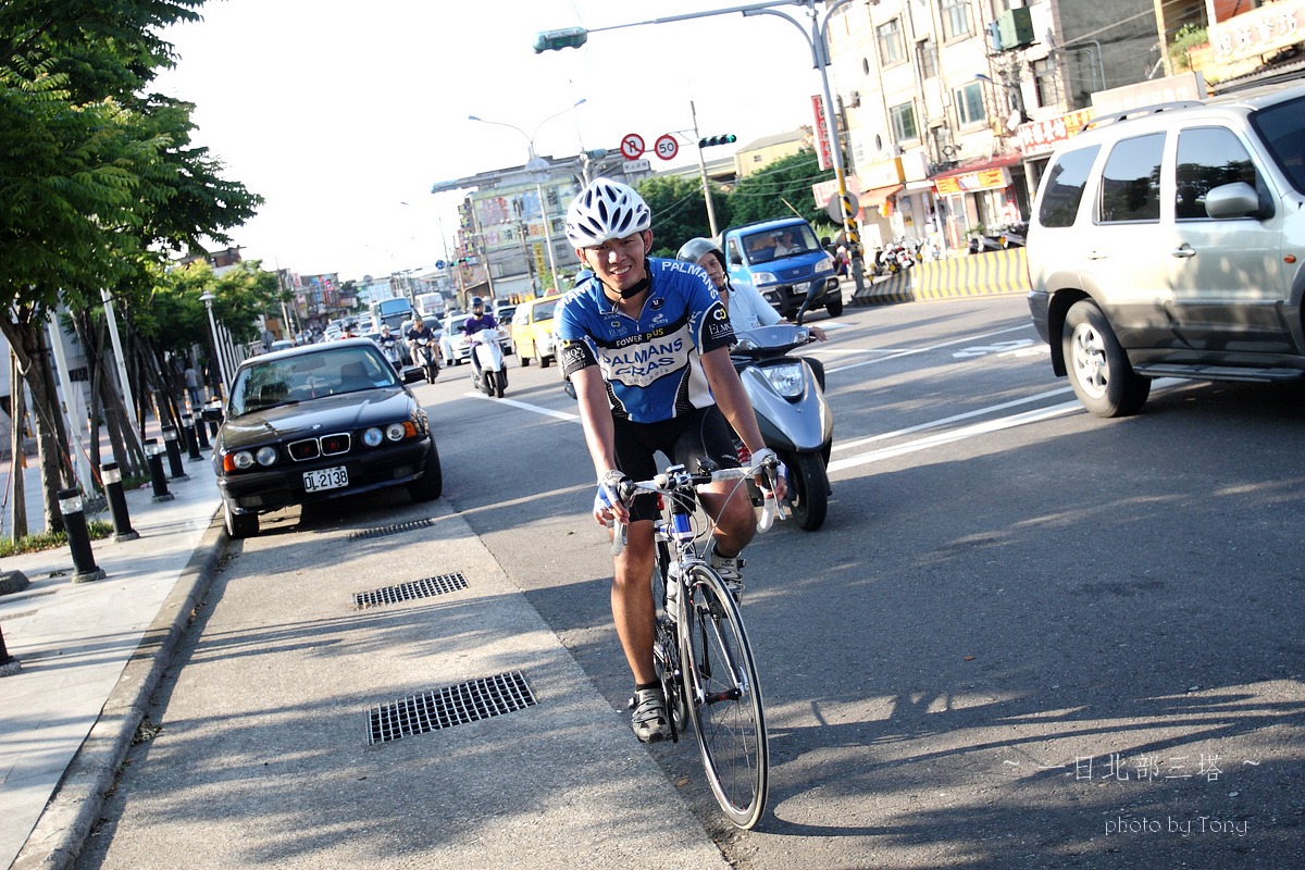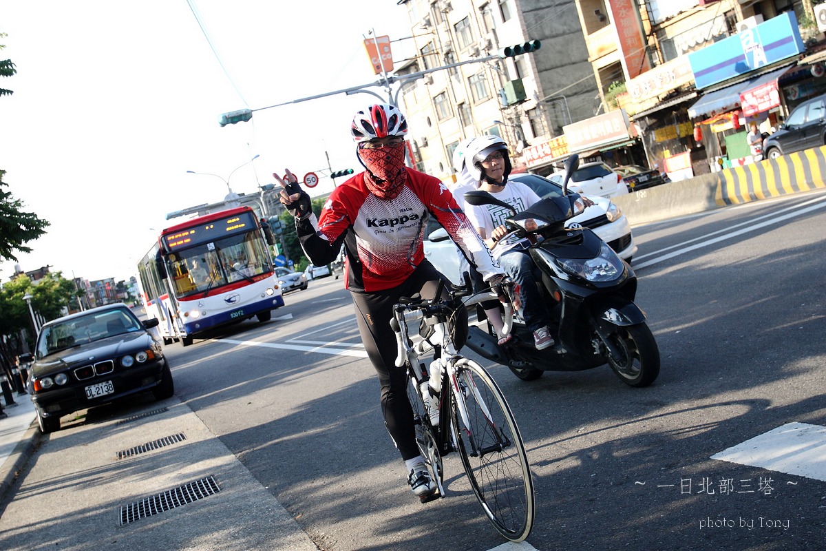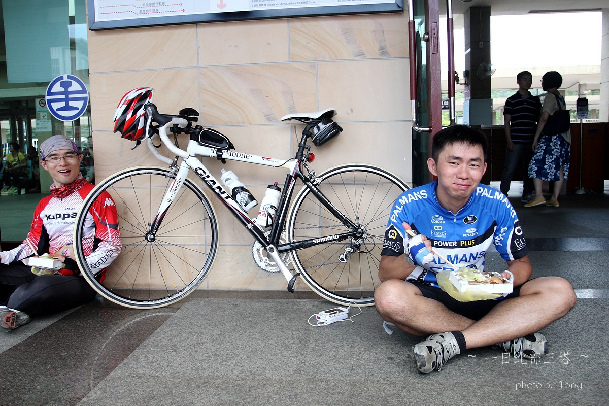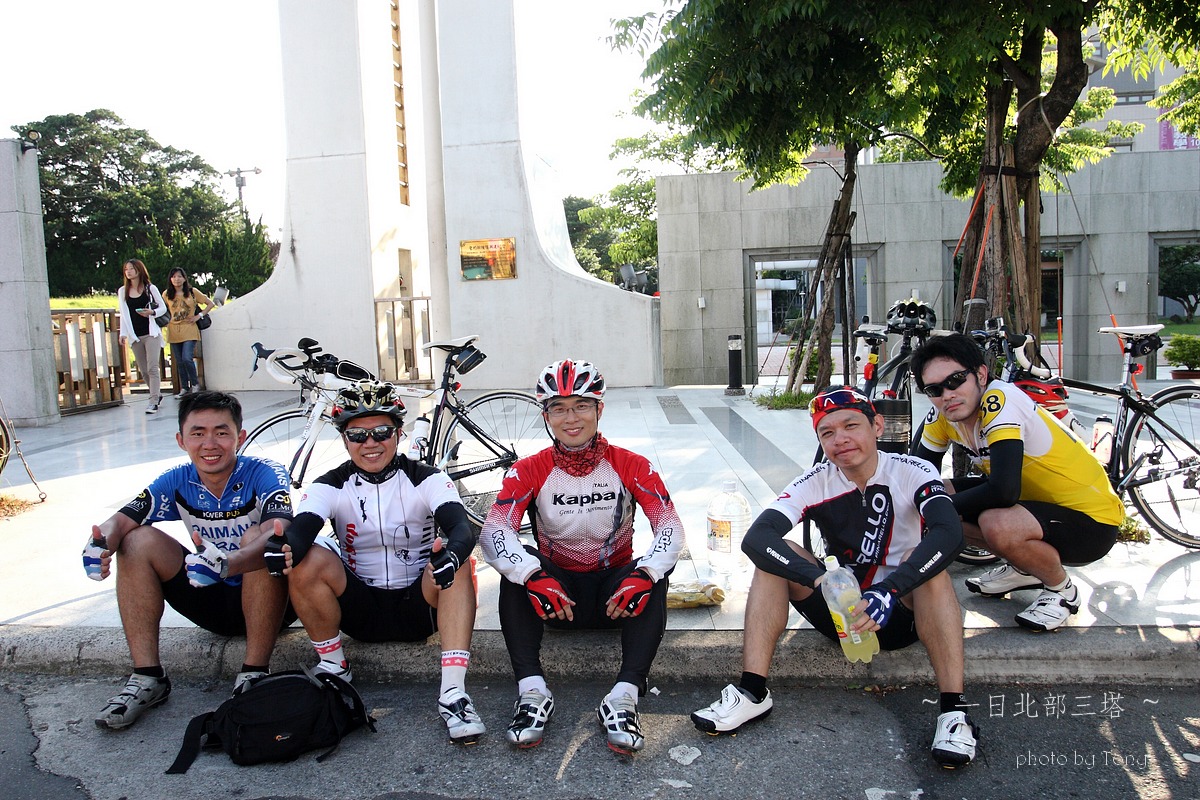 本來5月底6月初是石頭登山隊要上大小霸的日子,沒想到我老爸老媽突然說要出國去玩,那麼只好乖乖取消,老婆說我不是很想去嗎??但想到我四天不在家,老婆一個人要帶二個小的在家,我想我還是別去好了,那..不去四天,就來單車熱血一天好了~ 武嶺、一日雙北還是一日北部三塔、一日雙站(大屯山助航站+五分山氣象站)?? 一開始我和peter都傾向武嶺,但四五月的天氣實在太糟,頂多出門小繞一圈,里程數基乎都沒超過60km,這樣要去武嶺似乎會辛苦了點.. 好吧,看起來一日北部三塔似乎是相對上輕鬆的路線,只要一路上不爆衝加上好好休息很補給,應該是可以完成的~ gogogo~~ 參加人員:沒爬山一樣掛病號的stone隊長,買新車後就一直在家偷練的peter,年輕又愛跳的陳大鼓、完成226的鐵人啟村學長和怕抽筋的腿套Tony 預計行程表 06:30 動物園集合 06:40 (0K)動物園 --9.5KM-- 07:10 石碇 07:10 (9.5K)石碇 --19.1KM--08:10 十分車站 (靜安吊橋前集結,喝水) 08:10(28.6K)十分車站 --13.2KM-- 08:40 雙溪(第一次休息補給處,預計休息10-15分) 08:55(41.8K)雙溪 --20KM-- 09:45 三貂角(休息拍照,預計休息15分) 10:00(61.8K)三貂角 --7KM-- 10:20 福隆車站(吃便當??,預計休息20分) 10:50(68.8K)福隆車站 --18KM-- 11:35 鼻頭角(休息拍照,預計休息15分) 11:50(86.8K)鼻頭角 --21KM-- 12:40 基隆火車站(休息,預計休息10分) 12:50(107.8K)基隆火車站 --22KM-- 13:50 金山(休息,預計休息10分) 14:00(129.8K)金山 --17KM-- 14:50 富貴角(休息,預計休息30分) 15:20(146.8K)富貴角 --11KM-- 15:50 聖約翰大學(休息,預計休息10分) 16:00(157.8K) 聖約翰大學 --11KM-- 16:30 紅樹林捷運站 實際行程..當然是有所出入啦XDD,前半段控制的算還不錯 後來就...放牛吃草啦~ 06:00 STONE和陳大鼓來我家集合--8.14km-->動物園 06:54 動物園 --8.89KM-- 07:16 石碇 07:16 石碇 --19.31KM--08:01 十分車站 08:09 十分車站 --11.99KM-- 08:33 雙溪 08:55 雙溪 --18.19KM-- 09:36 三貂角入口 09:36 三貂角入口--1.14km--09:43 三貂角燈塔 10:11 三貂角 --8.64KM-- 10:33 福隆車站吃便當 11:03 福隆車站 --16.14KM-- 11:38 鼻頭角 11:54 鼻頭角 --17.60KM-- 12:32 基隆小7 12:58 基隆小七 --4.37KM-- 13:10 基隆港 13:14 基隆港 --19.85KM-- 14:11 金山小七 14:36 金山小七 --16.06KM-- 15:10 富貴角入口 15:10 富貴角入口 --1.17KM-- 15:17 富貴角燈塔 16:02 富貴角燈塔 --14.6KM-- 16:44 聖約翰大學 17:06 聖約翰大學 --8.97KM-- 17:28 紅樹林捷運站 17:35 紅樹林捷運站 --23.25KM-- 18:40 Home 路痴石頭隊長怕迷路,一早6:00先來我家集合,再一起到動物園去 peter帶的gopro3引起大家的注意,這次的影片就靠peter了:p gogogo~~全員五人到齊,準備出發!! ps:穿腿套真的不好看,但為了防止抽筋,只好醜一點了>"< 雖然晚了一點出發,但大家狀況好,比表定早了快十分鐘抵達 這次啟村學長是全家出動,感謝美淑一路幫忙補給,真是辛苦了!! gogogo~~往雙溪前進 ps:這次帶了30D出門,真是他XXXXX的重XDDDD,且路上也很難拿出來拍,以後還是帶S95就好! 雙溪到了,先補根香蕉 這次整路的小七都是我們的好朋友啊~ YES~09:43 第一塔到了,但上來將近1KM 10%的坡快把大家給搞死了~XDD 啟村學長說~~比猩猩這個動作..像是猩猩在抓癢= =" ya~~福隆到了,吃便當了!! 吃飽飽好繼續上路啊,行程還騎不到一半!! 呼~~鼻頭角到了,但燈塔得走進去,只好...放棄XDDD 大中午的還是得繼續趕路,終於...基隆港到了!!涼涼的海風好舒服~ 不過大家對基隆的路都不是太熟,小小迷路了一下>"<,最後先往外木山的濱海公路騎,再陡上一段才接回台二線,快把大家給操死了~ 不得不說這外木山的風景真好~~,忍不住停下來拍幾張!! 15:17 富貴角到了,騎了150KM才到..真是累死我了,那個之前快掛了的陳大鼓居然還有力氣扛著單車跳,真是年輕人啊XDD 雖然時間落後了,但離家也不是太遠了..大家就盡情休息吧~ 天黑前回到家就好!!^O^ 在聖約翰大學遇到前來情義相挺的同事LEO,感謝他一路幫我破風回家!! 本日累積距離..200K~YES,一日北部三塔平安完成 感謝大家一路相伴!!^++++++^ 一日北部三塔路徑軌跡 本次心得 1.這次怕大家體力不濟,所以設定約每20km休息一次,天氣炎熱加上之前大家訓練量不足,這樣的策略讓大家都騎完200k了,不過相對上花的時間也久了些,若還有下次,每次的距離應該要拉至25-35間比較好:p 2.中午過後,二次休息後都有輕微抽筋的感覺,推測應該是脫水太多,喝的水or運動飲料引起體內電解質不平衡的問題~ 3.回到家量體重,和前一天差了3kg,這是十年來的歷史新低吧XDDD,不過這是脫水...三天後體重就會恢復原有水準了:P 4.單眼真的好重...下次不帶了>:<