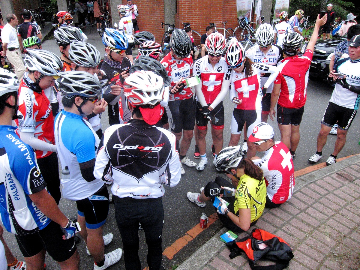 等了半年的小猴約騎又來了~ 最近小猴真的很忙,以前一個月會約騎一次 這次距離上次已經半年了..真的很久了!! 不過~~~也不是一定要和小猴騎 因為小猴約的時間比較晚,且只有一趟巴拉卡 這樣的運動量略嫌不足~ 本想要自己開團去五分山,但PETER說要去澎湖爽,他還沒去過,只好等他~ 那這週來陪小猴騎吧~ 只是八點集合前先加碼個稻香路 今年年初從復興三路去櫻木花道看櫻花就從稻香路下來 知道這條雖然不長,挺陡的.. 讓大家熱身一下應該等會就可以好好陪小猴慢慢騎車了~~ 只是沒想到這一趟平均坡度幾乎高達10%的坡把久沒騎車的Eugene搞到快不行^^ 短短的3km,也讓其它人喘到了 下滑到紅樹林捷運站去等小猴~ 沒想到她經過我的時侯會叫我「Tony叔叔....」 我被小猴認出來了耶...好感動T___T 不過她對著我後方的STONE卻是叫「STONE哥哥...」 那A差這麼多XDDD 今年衝著小猴來的車友真的很多 一眼望去至少有破百人,不知情的人還以為是有什麼小比賽吧~~ 今天買公路車沒多久的廖師兄也有來,特地來看小猴的~ 只不過一出發就前輪卡住.. 故障排除了幾分鐘才出發..小猴和STONE早就不知騎到那去... 陪了廖師兄一段路確認沒問題後才趕緊抽車追上~~ 還好小猴沒騎太快,在天元宮前總算趕上.. 車友眾多,要擠在小猴旁邊真的不容易 只好到她前方拍照 這時就看到STONE隊長出現啦~ 出現在小猴旁邊要我幫忙拍合照~ 真是很會卡位啊!! 到了北新莊稍微休息一下後就由巴拉卡公路出發往二子坪前進了 小猴的速度不算快,但一路都還可以用大嗓門的聲音來和大家拉低賽 真的是一位肺活量好又很開朗的女生 難怪她的車友粉絲會愈聚愈多啊~~ 小猴以前都是領先到終點 現在被以前比她弱的人刷卡~(我就是^^) 她說...讓她再瘦個3公斤,大家就知道.. 嗯~~等著看吧:P 一早的稻香路就讓大家有充份熱身~熱到滿頭大汗了^^ Eugene這半年都沒什麼動,遇到3KM的連續陡坡吃不消~ 衝著小猴才來的廖師兄~ 呼~~從後方追上小猴了~追好久XDDD 好開森的STONE隊長~~ LEO你怎麼了^^ 很會爆衝的陳大鼓~ 喔耶~~兩台SCOTT CR1 排排站~ 廖師兄,記得請我吃飯啊!! 小猴停下來根本沒法好好休息,因為大家不停的要和她拍照簽名,好忙啊!! 上巴拉卡了~大家衝衝衝~~ 騎在路上的小猴一直都要保持微笑,因為隨時都有相機出現~ 逆光開朗猴~ STONE隊長又來前方合照了~ 小猴裝可愛啊~~ 把偷跑的伯儒和LEO抓回來和小猴合照^^ 怎麼拍~~都覺得隊長車子好小XDD LEO讚啦~ 小猴加油~ 小猴身上揹的是約騎護照和要蓋的章,有問她需不需要幫忙,但小猴婉拒了~,她覺得自己來就好~~ 今天忘了帶約期護照來~只好蓋在手臂上~