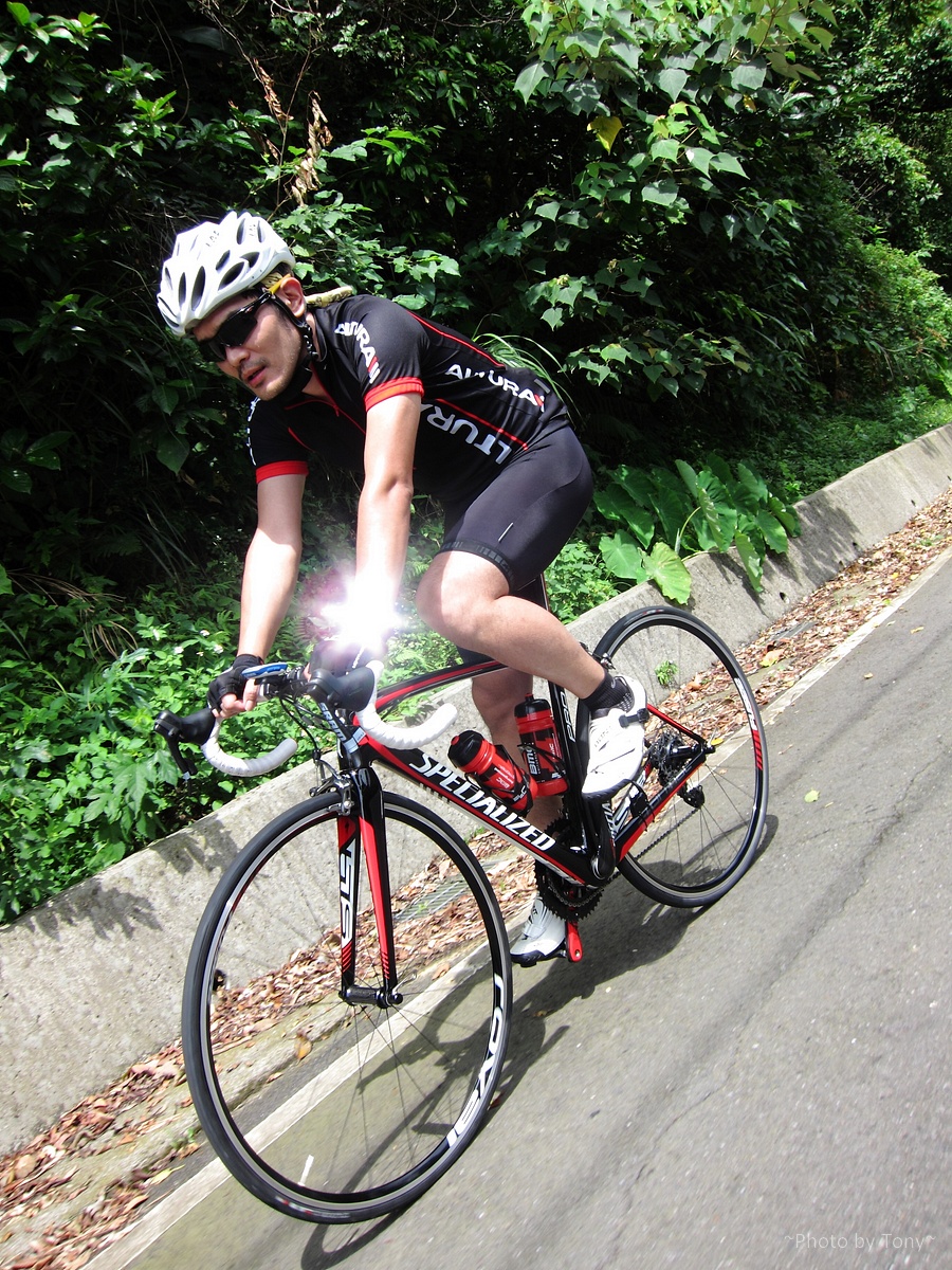 石頭車隊確定於8月要去參加好朋友車隊的武嶺團騎 既然要參加就不能太漏氣 這星期來個北海岸加上逆騎風櫃訓練 為什麼上武嶺不直接練爬坡就好?? 據我不負責任的收集網路上的一些資訊 爬山要強,也不是要一直練山路就好 平路緩坡也是很好練習的方式~ 單車對我來說算是入門容易,精進難~ 只要會騎車,只要有腳力,一開始要怎麼騎都可以~ 但怎麼長程體力分配和補給、怎麼省力踩踏,怎麼運用重心來抽車,上半身的力量如何輔助踩踏,都是進階的課題~~ 在網路上又看到一個名詞 -- 「LSD」,不是「LDS」喔~ 什麼是「LSD」,一般來說就是「Long Slow Distance」,但也有人說是「LONG STEADY DISTANCE」 要多慢??多久??騎多遠?? 好像沒有一定的答案,但至少是要一小時以上~,騎到三小時都可以!! 要多慢??GOOGLE大神說是最大心跳的60-70% 我心跳最快算195好了,70%大概是137而已~ 媽呀~,這個心跳大概只能騎時速20-25間..是怎麼練習啊Orz 好啦~先不管心跳,先看看LSD的好處~ GOOGLE大神有此一說 「在長距離的騎乘下,我們身體開始使用脂肪來提供能量,若你從未經過這樣的訓練,身體是無法使用這個能量供給系統的,所以在此LSD訓練下你獲得的是耐力的建立,而不是更多的power輸出。 Power的建立是在強度高、時間短暫的訓練下產生進步的。而真正的power訓練是不會提高你的耐力的。」 所以LSD是來增加耐力的~,是來訓練體內脂肪轉化成為我們的能量的~(消脂好用^^) 武嶺一共55KM,需爬升2800M,除了需要爬坡的肌力外,更是需要耐力.. 所以這星期就找大家來訓練耐力 從大度路承德路口集合後就一路直奔金山小七,路程約45KM,估計以均速25KM不急不徐的前進就好..(通常之前都會在三芝就休息一次~~),預計約2小時到就好 休息20分鐘,大家補給好就準備逆上風櫃嘴,考驗一下大家經過2小時騎乘後的爬坡能力... 結果~~結果~~ 人算不如天算啊~~ 這天總共來了8位車友,石頭車隊的約騎好久沒這麼多人了~ 大概是這樣讓大家太興奮了~ 一開始前一天喝酒喝到半夜的PETER率先爆衝,連淡水市區都還沒過..就卯起來騎是怎樣~XDD 再來也是半夜2點半才睡的陳大鼓也不甘寂寞,很快的竄了出去.. 而阿菜是在三芝前遇到小坡就很HIGH~看坡就抽車上... 連在FB上喊著要慢慢騎的LEO都刷卡過我身邊大喊「衝衝衝....」 所以在這種情況下,怎麼維持均速25KM LSD的訓練... 好吧~大家想騎快就快吧~大不了等會爬坡爬慢一點就好!! 最後石門到金山平路段就跟著伯儒出去,倆倆輪車到金山去 此段45.5KM本來預計要將近2小時,結果扣掉等紅燈的時間,只花了1:30分,中間等了7分鐘的紅綠燈....,比預計時間快上不少 因為比預期快,所以就休息了快30分鐘才再出發 從金山小七到風櫃嘴間有好幾個叉路,幾個車友沒騎過,若一不注意可能就會錯過,所以預計叉路口都要集結後再一起騎~~ 沒想到在往大坪國小那就等了LEO和阿菜將近十分鐘...,看來剛才的平路有操到了,所以在靈泉寺大家再休息一次,不然之後連續3K 8%的坡可會讓人很痛苦的~ 最後大家都順利騎完,LEO拖著近2KG的板輪也努力沒抽筋的爬上來了...真是大恭喜,大家一致認為若有輕量一些的輪組,LEO的表現絕對不止如此~ 而昨晚只睡3小時的陳大鼓居然也沒爆掉,真的很讓人意外,看來前一週的騎車+跑步的訓練真的發揮效用了 武嶺之行只剩一個月,大家繼續加油 :) 北海岸+逆騎風櫃嘴 看看這些姿勢,是慢慢騎嗎??XDD 八個大男生騎了快2小時,沒有個5000CC的水是不夠的XDD 才長征宇老回來的伯儒,這條路線像是他的後花園一樣~ PETER還真是會找角度度啊~ 這個路口沒右轉上去,就準備再下到萬里去了:P 上次一日北部三塔在基隆餓到的陳大鼓,這次車衣後面滿滿的補給品XDD 唉呀~~隊長好閃啊XDD 大家都平安抵達,本日團騎大成功~~