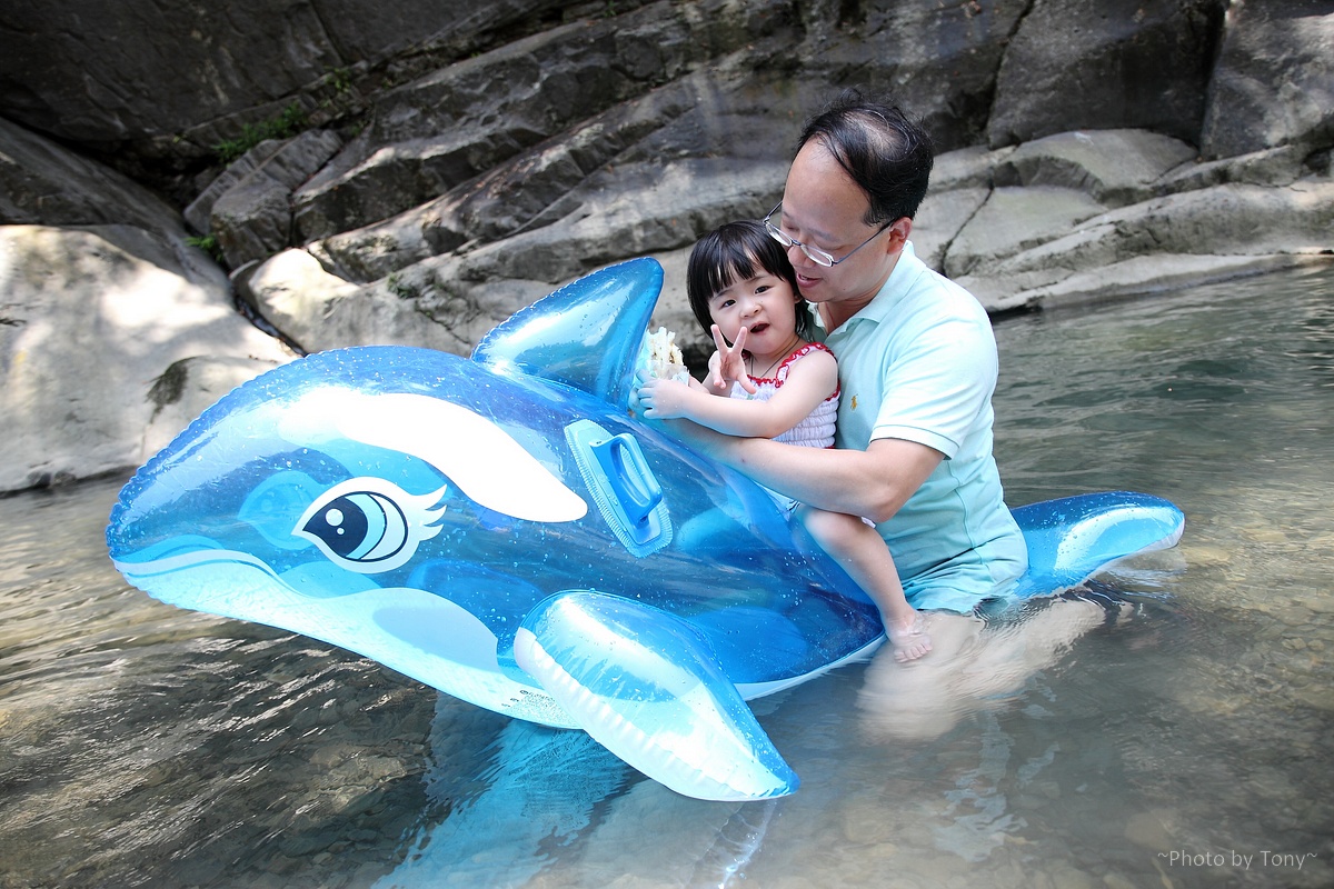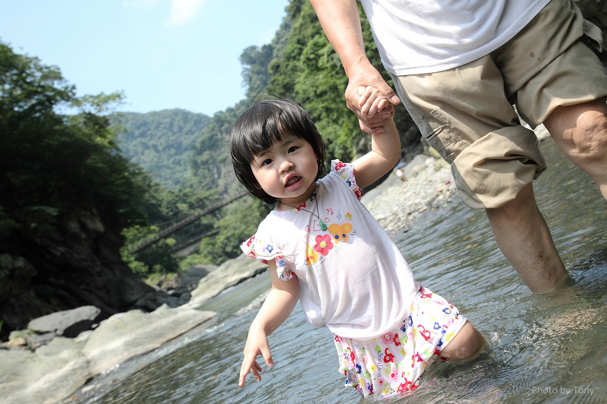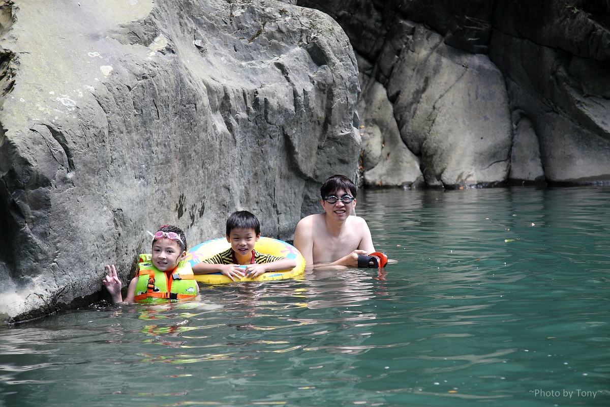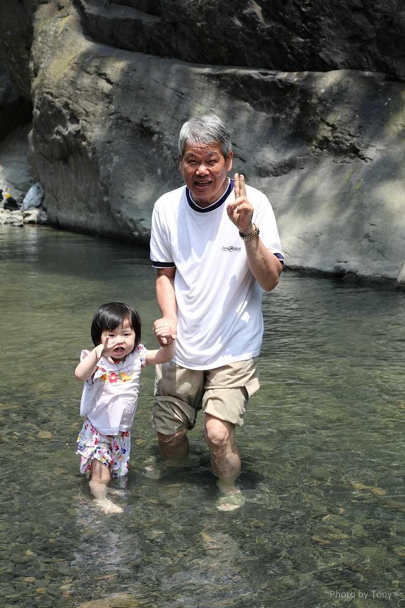 炎炎夏日,又到了玩水的季節。 剛好表妹珊如帶著璇璇回台 大家討論要去那玩~ 去年很受好評的金瓜寮溪因為已經去過二次,大夥興趣缺缺 那就重新找地方吧!! 找來找去,還是真不好找地點,突然想起上次騎車往福山時,經過一個信賢吊橋,那附近似乎不錯,上網查一下,是親民適合全家老少的地方,那麼就走吧!! 信賢吊橋過去就是信賢步道,也就是以前往內洞的車道,現在開了新路,這段就成為步道,步道長約一公里,中間有大大小小瀑布約十個,不過可以玩水的大概就只有一個,從吊橋散步過去不用5分鐘就到了,相當的近,不過腹地很小,加上遊客不少,實在很難容納我們近20個人的大團。 之前看網路文章時,就有人提到可以下到溪谷去,抵瀑布前我發現有一處似乎可以下切的地方,找了表弟聖雯就下去探探,下切的路不是太好走,但小心走也還好,溪谷腹地還不小,水也算乾淨,也有深有淺,大人小孩都適合,那就糾大家下來吧!! 寛闊的溪谷只有我們這一團獨享,大家玩的不亦樂乎 只是可以遮蔭的地方不多(讓我有想敗個炊事帳的衝動!!XDDD) 算是美中不足的地方~ 這個新發現的地方,我想應該還會來玩好幾次吧:P