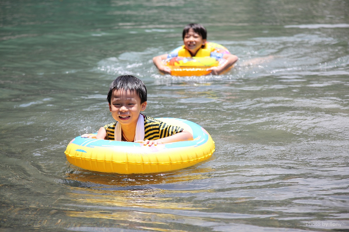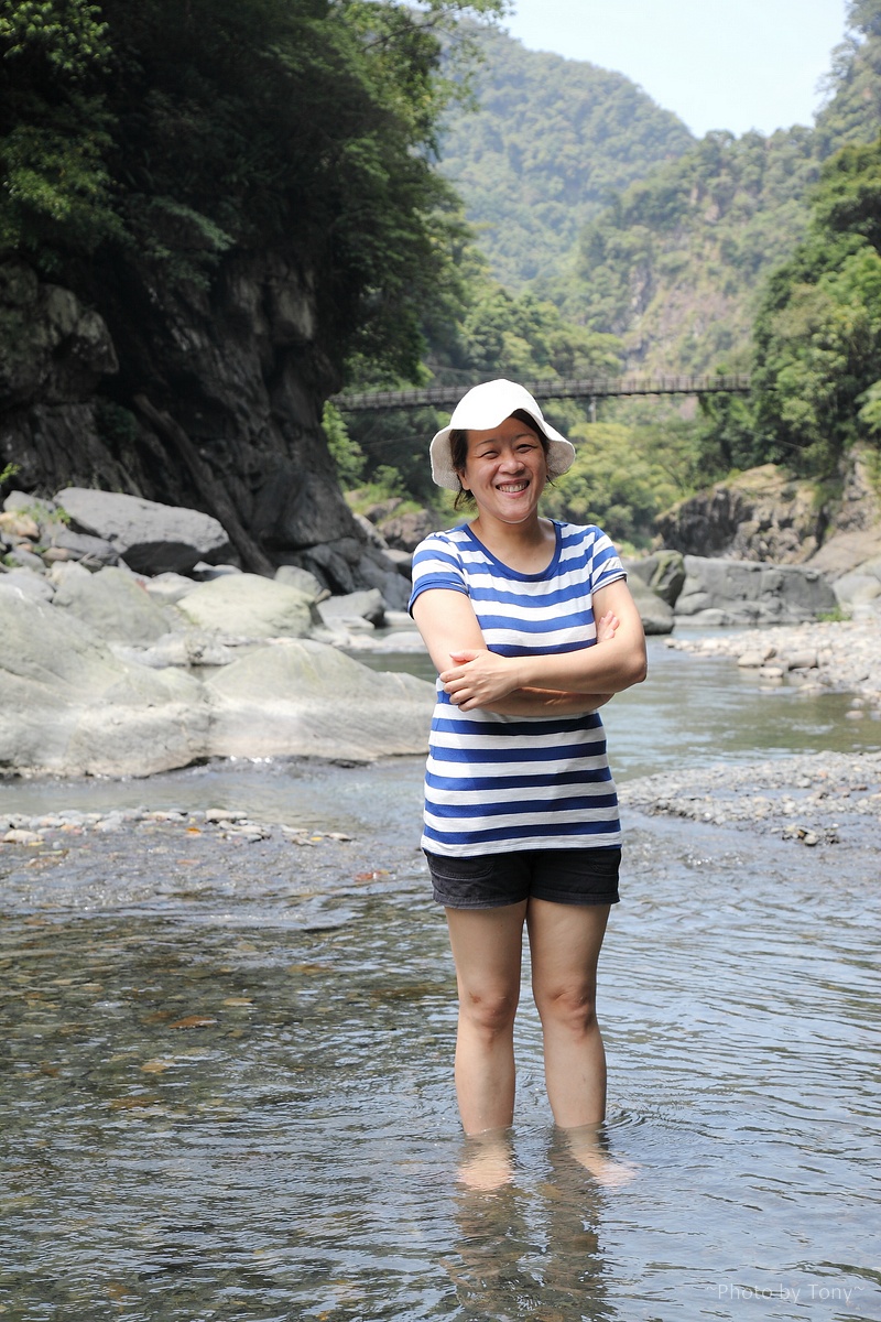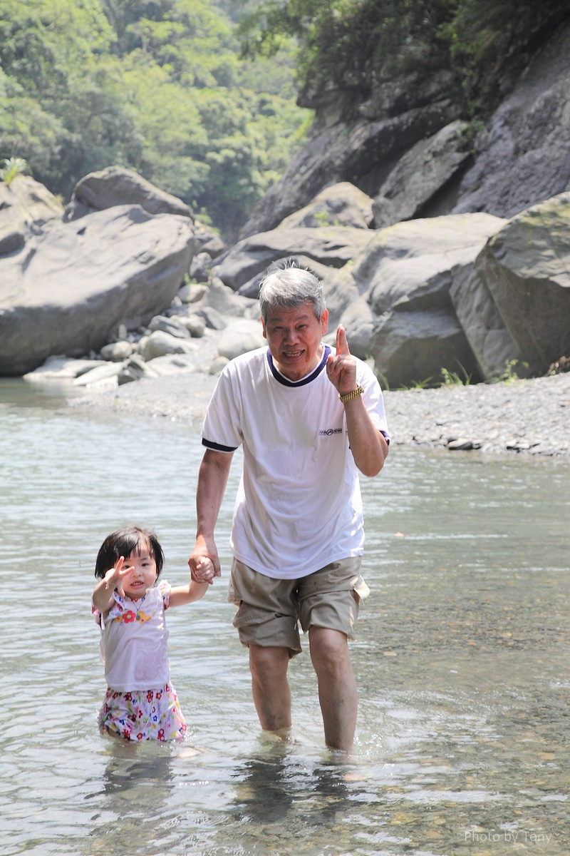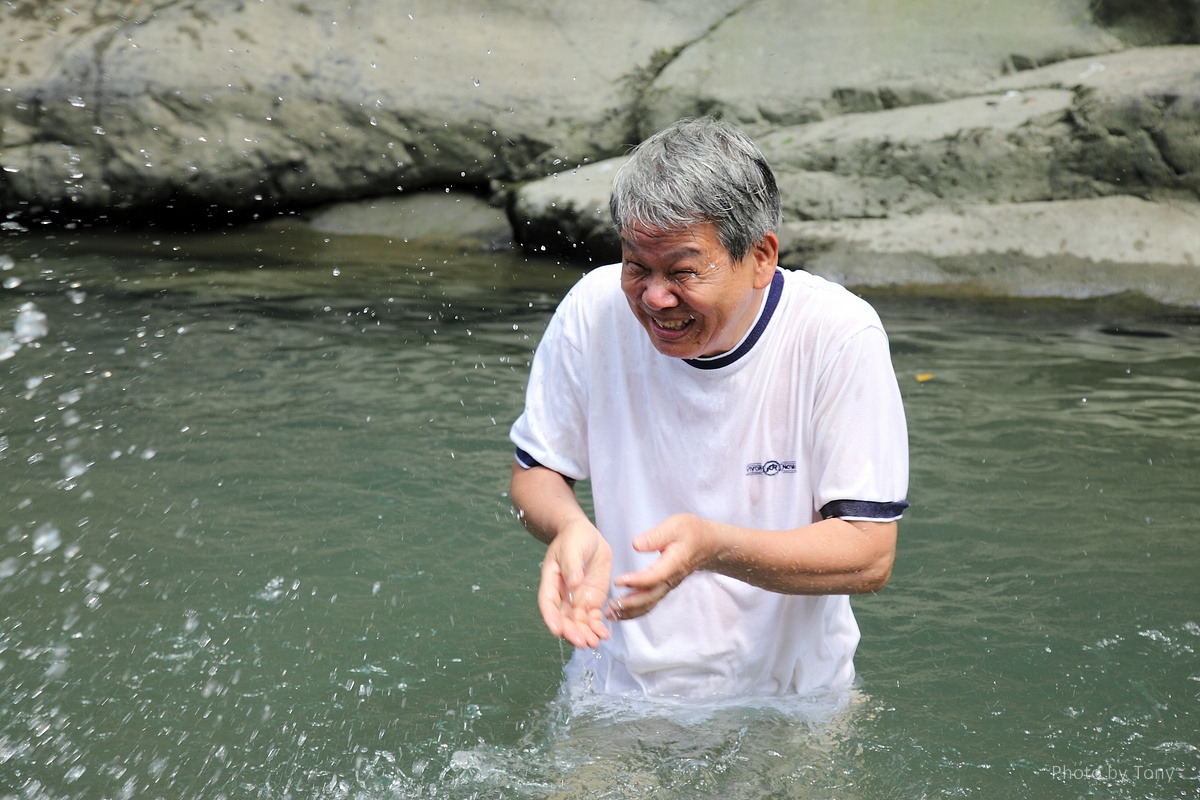 炎炎夏日,又到了玩水的季節。 剛好表妹珊如帶著璇璇回台 大家討論要去那玩~ 去年很受好評的金瓜寮溪因為已經去過二次,大夥興趣缺缺 那就重新找地方吧!! 找來找去,還是真不好找地點,突然想起上次騎車往福山時,經過一個信賢吊橋,那附近似乎不錯,上網查一下,是親民適合全家老少的地方,那麼就走吧!! 信賢吊橋過去就是信賢步道,也就是以前往內洞的車道,現在開了新路,這段就成為步道,步道長約一公里,中間有大大小小瀑布約十個,不過可以玩水的大概就只有一個,從吊橋散步過去不用5分鐘就到了,相當的近,不過腹地很小,加上遊客不少,實在很難容納我們近20個人的大團。 之前看網路文章時,就有人提到可以下到溪谷去,抵瀑布前我發現有一處似乎可以下切的地方,找了表弟聖雯就下去探探,下切的路不是太好走,但小心走也還好,溪谷腹地還不小,水也算乾淨,也有深有淺,大人小孩都適合,那就糾大家下來吧!! 寛闊的溪谷只有我們這一團獨享,大家玩的不亦樂乎 只是可以遮蔭的地方不多(讓我有想敗個炊事帳的衝動!!XDDD) 算是美中不足的地方~ 這個新發現的地方,我想應該還會來玩好幾次吧:P