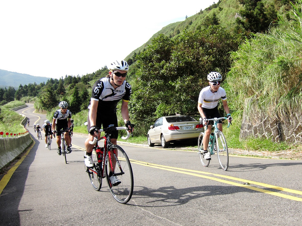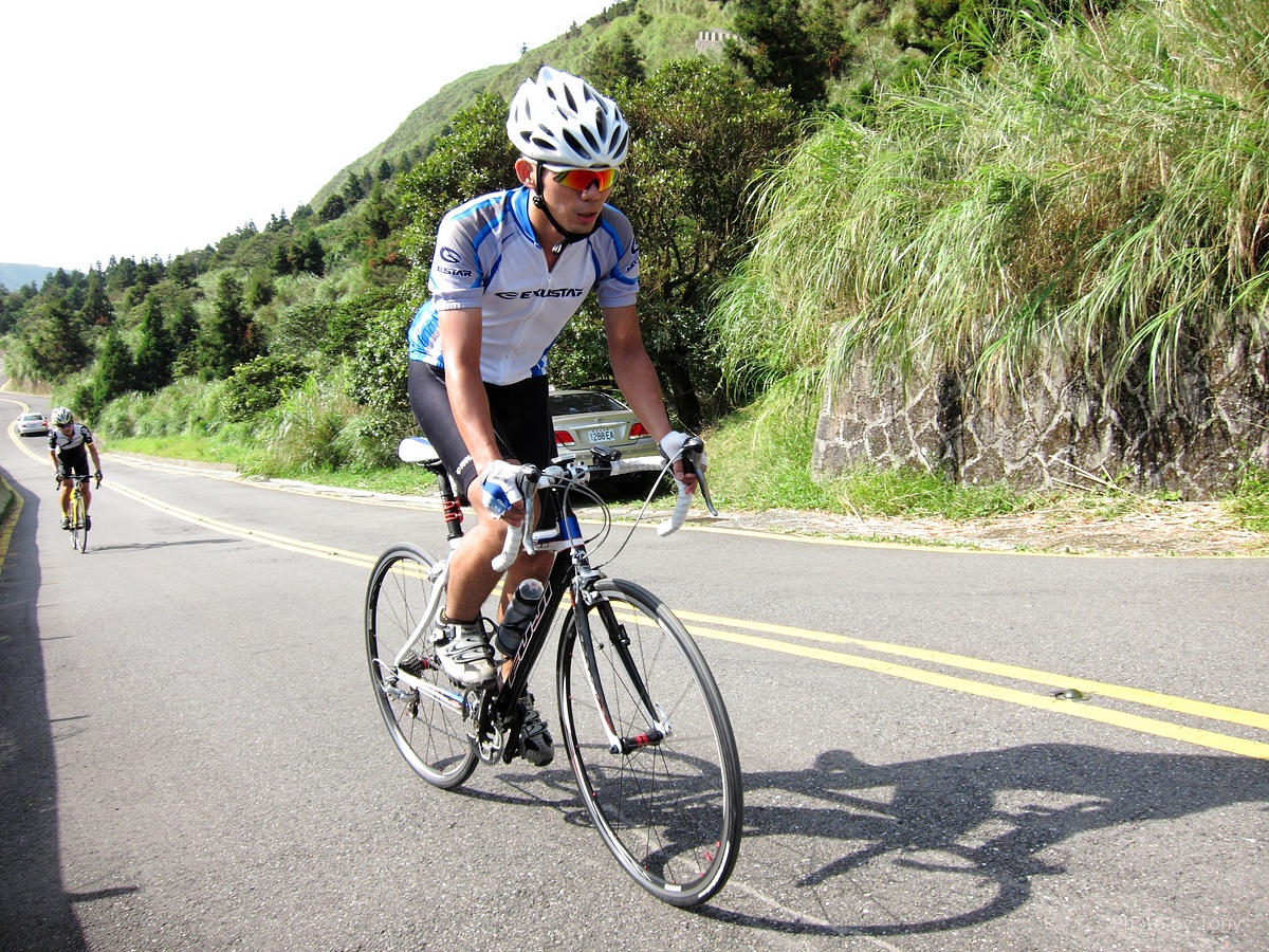 武嶺的日期愈來愈接近了,這週大家說想騎騎2P,測試一下爬坡的狀況!那就GO吧~ 還記得去年還在猶豫要不要報3P賽前,和STONE二人也騎了一趟2P 那次順順的騎,除了幾個陡坡有比較吃力之外,大致上騎到風櫃時,都覺得大腿還算有力!! 但是這天...腿一整個痠啊!! 上次騎冷水坑一趟騎了65分鐘,這次..只花了55分鐘!! 時間看起來只差10分鐘,但花的力氣差很多XDD 為什麼這樣,只能說誤入羊途... 騎完就道等會下到金山要回風櫃嘴時就知死了~ 不過比我更慘的是陳大鼓,他總是會在某些路段爆衝.. 這次在轉進菁山小鎮前的緩坡,一下子就超過我 但我想因為等會就是冷水坑魔王坡,這段得稍微休息一下,就不急著追 沒想到在菁山小鎮前都還沒能追回陳大鼓,這次陳大鼓爆衝的時間拉長了 不過魔王坡不只有一個 果然在第菁山自然中心前,陳大鼓的速度終於慢了下來,那時我才有機會超回來.. 若沒第二個陡坡,不知陳大鼓會噴到那去??但這一噴,看起來是很累了~~ 下到金山,整個小七人滿為患,單車多到不知要放那 補好水份,吃根香蕉,帶二條巧克力,準備往風櫃嘴前進~ 往大坪國小的路上就明顯感到腿力不足,加上天氣轉熱,一整個覺得騎的很辛苦~ 那麼辛苦就不用一次衝上山,到了靈泉寺先集合休息一下再拚最後3km~ 雖然只有3k,但這3k真的中段還真是他xxx的陡,就已經快沒力了,坡度還顯示在10多%,好險撐過之後也剩不到1k,看到賣菜阿婆就知不遠了,再看到流動廁所,就知轉個彎就到了...,終於到了,累死人了XDD 沒一分鐘STONE也緊接著就到了,LEO也是,這次LEO的表現和上次淡金+風櫃的表現真是判若二人,從金山一路就黏著STONE,STONE說甩都甩不掉...,風櫃最後1.5K才成功甩開一些,但看著LEO帶著微笑上到風櫃,似乎還保留不少...,看來這個月每週一、四的特訓和新輪組C24的雙效效應相當驚人... 看起來大家的實力愈來愈接近了.. 以後的團騎會愈好玩吧:P 2013-07-28 累翻的2P練習軌跡