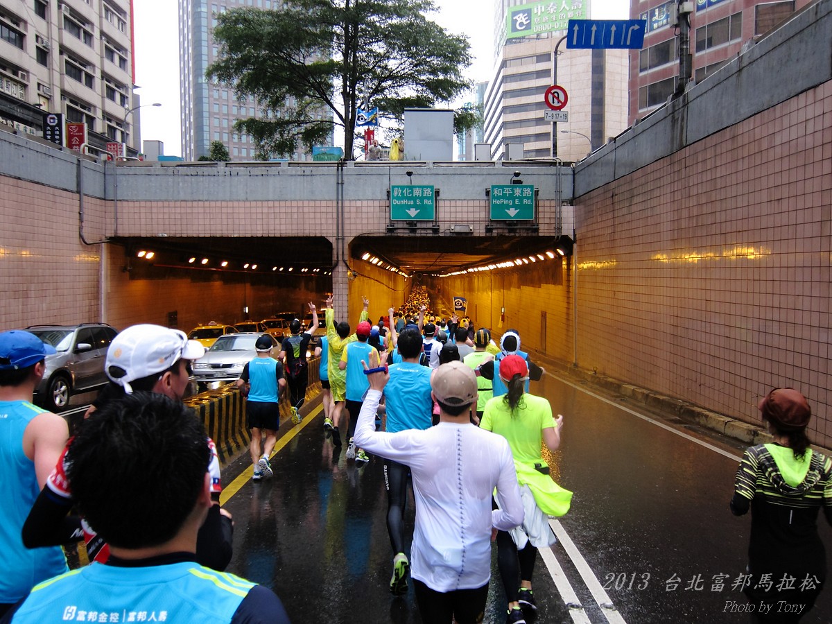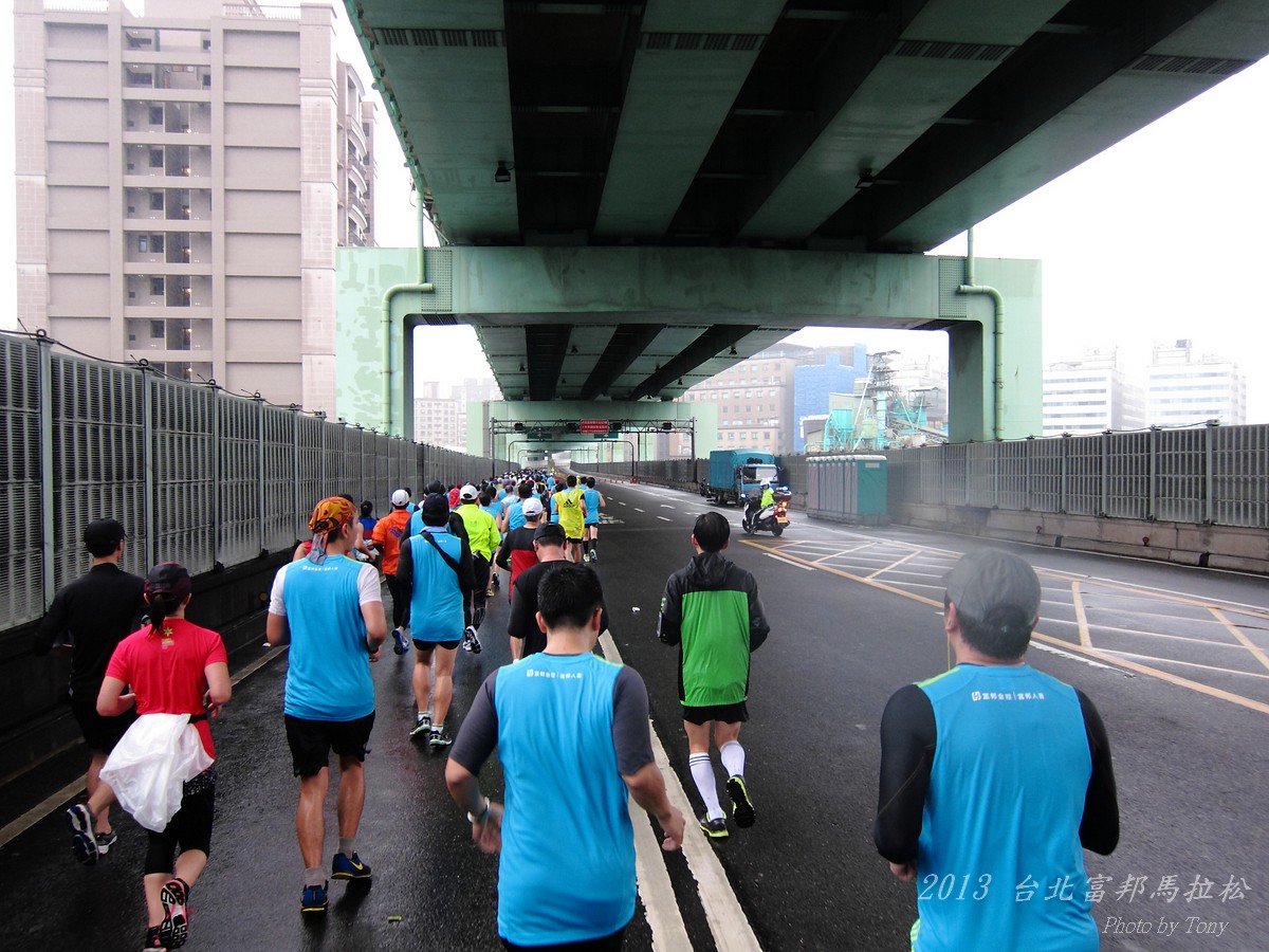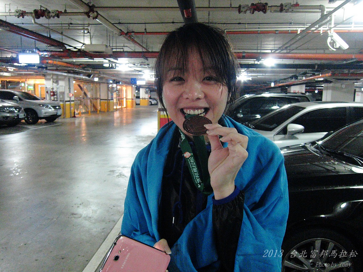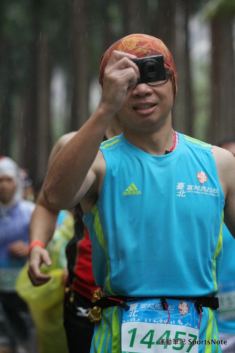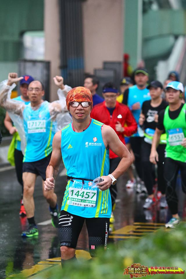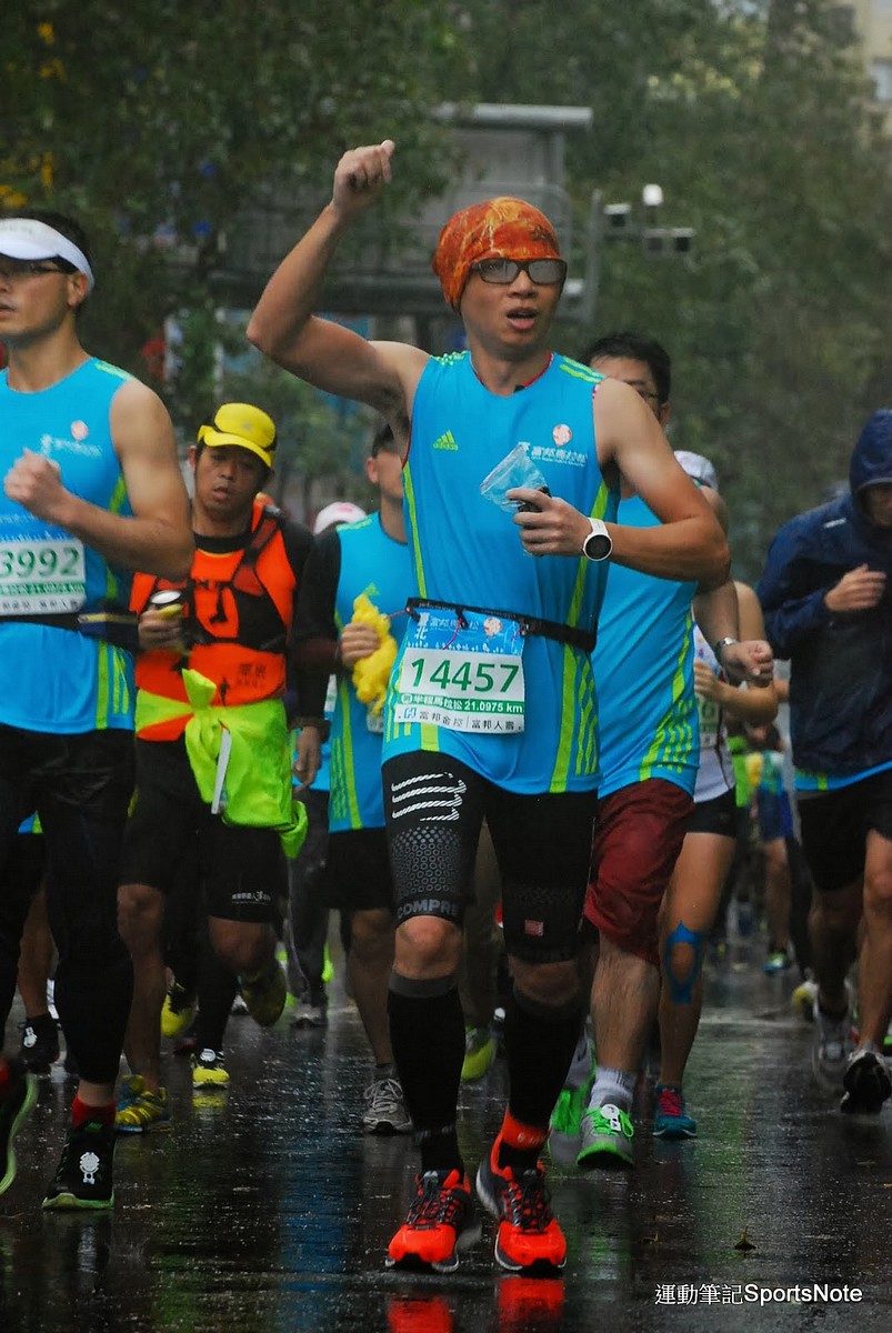前一天看著天氣預報,心又涼了一截...降雨機率高達90%..Orz 上次太馬已淋了二個小時,我看這次又差不多了XDD 一早來到W和大家集合 因為起床太晚,只得匆匆吃了二個巧克力餅干就準備往市政府集合出發!! 又糊塗的忘了帶一包能量包,只好先和外星人小頡先借一包來放!! 雖然天空下著毛毛雨,但心情卻是熱的... 人也多到爆,擠了13分鐘才出計時拱門,一開始出發的選手都已跑到圓環去了~~XDD 且~~才出發就和大家擠散... 好吧~就慢慢跑吧~ 出發時二旁不乏加油的民眾,先來拍幾張~ 跑個1K~右邊出現了熟悉的聲音~(NATSUMI的笑聲~~) YA~~居然遇上NATSUMI了~ 趕緊過去和大家集合拍個照!! 然後路邊再拍個二張之後...大家又不見了XDD 好吧~遲早是要分開的,就按自己的節奏跑吧~ 不過要按自己的節奏也很難啦,路雖然大條,但人太多,尤其我幾乎又是最後出發的,6分速就得一路超車了XDD 且加油的民眾有時在左邊,有時在右邊,要切來切去有時還有點辛苦啊!! 像是中山北路幾位辣妹,我就是來不及切..跑過頭再繞回去拍的XD 反正....專心跑,和拍照跑,頂多也差個10分鐘而已,快個10分鐘,排名一樣很後面,慢個10分鐘卻多了這麼多可以回憶的照片,我想...這是值得的吧:P 就這樣...一邊跑一邊拍,在下新生高架橋時,居然也被國棟給追上了,看來最近二次每次二小時的LSD特訓真的有用,抽筋棟終於要一雪前恥了~ 跑到忠烈祠前大約11公里,在這的補給站把能量包給吃掉,再喝個半杯舒跑後,繼續向前挺進!! 不過~~就在自己身體覺得愈跑愈順時..,左小腿突然傳來一點點刺痛...Orz 按之前的經驗,我知道我的腓腸肌又出問題了~~ 上週自己用5分半的速度練跑近15k都沒事,怎麼這次在13-14k就出現問題?? 我想..可能是上週的疲勞還沒結束,週三練跑時,好像又稍微有拉到~ 雖然經過三天的休息已沒什麼感覺了,但終究在13-14k後就顯現出來了!! 我看似粗壯的蘿蔔怎麼會這麼弱啊XDDD 路程都已跑一半了,就繼續跑吧~ 降點速讓爆掉的時間延緩大爆發發作!! 就這樣撐到環快上面,雖然只剩2-3KM,但看見補給站還是去喝個水,喝個餅干和香蕉 再到護理站去噴個肌樂!! 沒多久就看到全馬的前導車從後方開過來了 哇塞,第一名回來了,肯亞的喬瑟法·傑可波(Josphat Kamzee Jepkopol)從我身邊飛快的跑過,超強的啦~~ 最後出了基隆路的地下道,只剩最後1KM,大家也都加速了起來,突然被一個小個頭女生刷卡而過,又激起我的鬥志,雖然蘿蔔痛,但還是要看一下刷我卡的是那位女生,努力的用5分速跟上去,只敢拍個背影,不好意思拍正面...XDD,最後200公尺,她再度加速...,我為了要拍照,只好目送她遠離XDD!! 這次成續2:09"15,比太馬退步了一點點~ 我想..照片拍的比較多一些,再加上蘿蔔痛是最大的主因~ 不過這成績我是覺得還可以了啦,蘿蔔痛才是我在意的~(經過一天的休息、冰敷、上小腿套再貼上撒隆適布後,情況已好轉很多~) 未來~我看~得多加強我的蘿蔔訓練才行!! 這次台北富邦,本想希望看能不能請老婆帶著兩隻小鬼來終點幫我加油~ 但這雨實在太大~~ 只好看看下次有沒有機會了!! ^__^ 距離: 22.22 公里 時間: 2:09:15 平均步速: 5:49 分鐘/公里 平均心率: 162 bpm Avg Run Cadence: 180 spm Avg Vertical Oscillation: 7.3 公分 Avg Ground Contact Time: 245 毫秒 Avg Stride Length: 0.95 公尺 衣保袋一個100元,很大,可以裝很多東西,不過不防水,這種天氣自己的乾衣服要用塑膠袋再包起來!! 為了富邦馬,第一次搭信義線捷運!! 捷運提早發車,許多人都搭捷運來市政府前集合!! Go Fun 準備集合出發了!! 原諒我的小相機在燈光不足下的效果實在....Orz GOGOGO~~(KT你終於出現在我的相機裡了!!) 我們還沒出發,前面的己經跑到仁愛路圓環了!! GO~出發!!(大家都不見了XD) 後面的無臉人是怎麼回事XDD YA~~撿回Go Fun隊員--林庭瑄 這次進步超多的果凍~ 撐到9K還是ITB的WES~XDD 賽完以為自己破PB的NATSUMI~:P 看到相機就瘋了的大家XDD 讚讚讚~~有觀眾加油真的跑起來比較有力!! (這裡才不到3K~當然很有力~:P) 也有視障者加入,毅力讓人佩服!! 加油~加油~ 加油~加油~ 斯巴達出現了~ 空姐出現了~~ 熱情的民眾~ 格格也在總統府圓環出現了~~:P 就是這幾位辣妹~讓我沒破PB的~ 阿姨加油~辛苦了!! (晴天的話很想多拍台北市風景,但下雨一片霧茫茫..只好多拍加油的民眾!!) 全馬半馬在這裡要分開了(分開後..人還是一樣多XDD) 雖然下雨,但還是滿滿的人潮!! 經過忠烈祠了!! 白蘭氏這幾位加油的美眉真可愛^O^ 這二位穿著白西裝和小禮服來跑步,好猛啊!! 要上快速道路了!! 折返點到了!!終點不遠了! 半馬靠內跑,因為...第一名要來了!! 第一名回來了,肯亞的喬瑟法·傑可波(Josphat Kamzee Jepkopol)從我身邊飛快跑過,超猛!!一下子就不見了~~ 大家幹嘛這麼HIGH~ 因為地下道上頭有攝影師啦!! 就是這位妹妹,最後1K把我刷卡了XDD 終點到了!!終點到了!! 2小時23分抵達!! 我的眼鏡起霧了!! (難怪一片霧茫茫 XDD) 排隊領毛巾和獎牌!! 跑的時侯不會冷,一停下來就覺得冷了! 大家紛紛把大毛巾給披上!! 我的晶片沒有去退還,就捐給罕見疾病基金會了!! 獎牌的質感還不錯~(但我拍的背面去了XD) 坐在角落竊笑的小花 恭喜林庭瑄完賽 Go Fun大集合~ 回家前撿到外星人小頡,以3:39完賽,真是太強大了!! -------------------------------------------