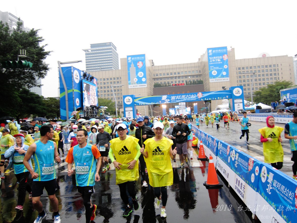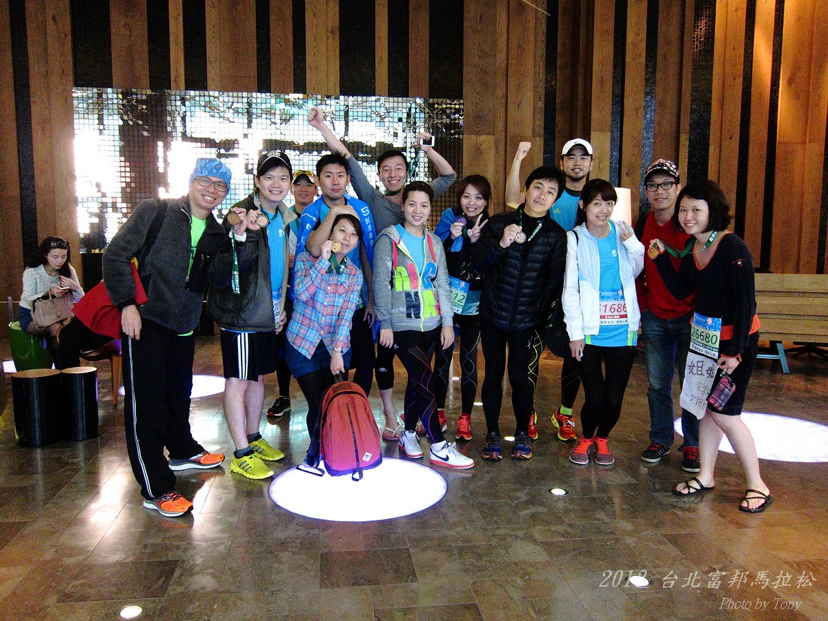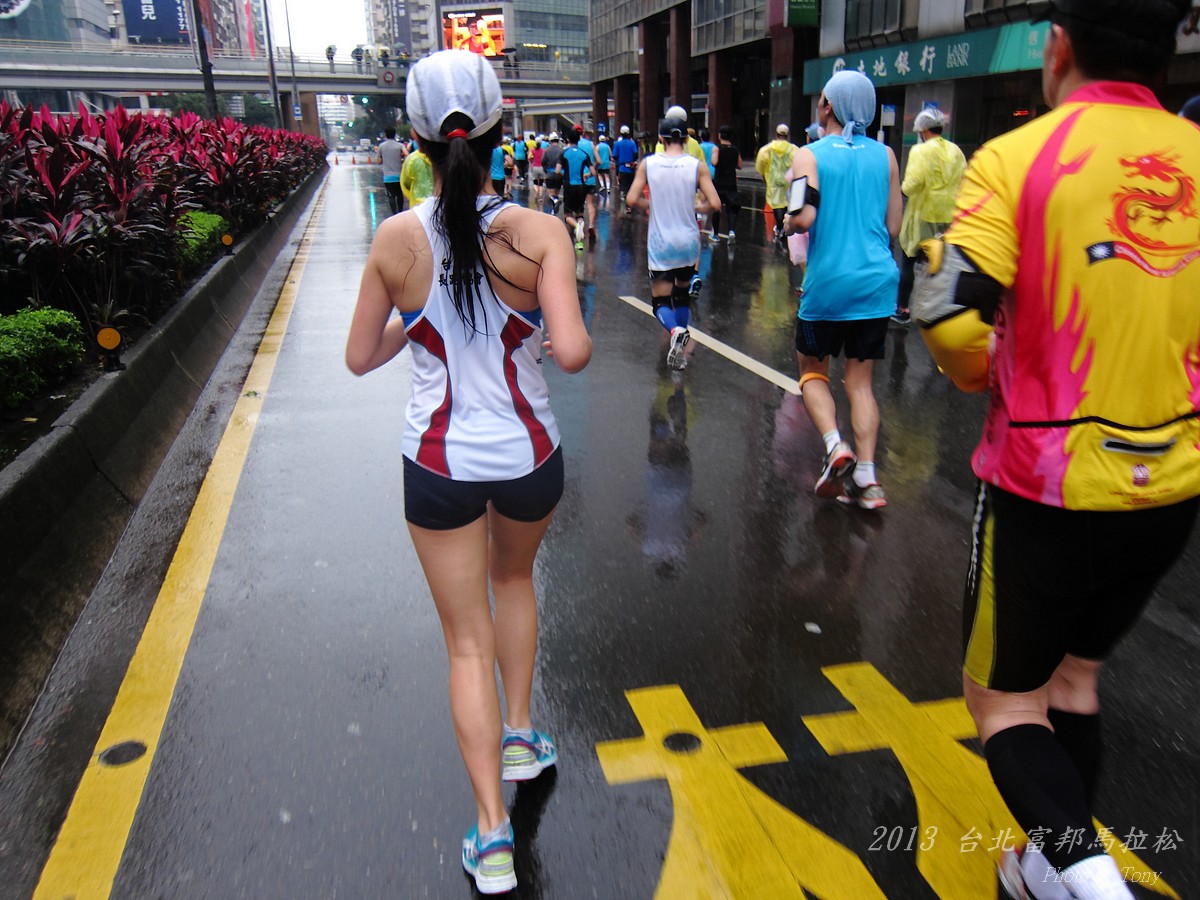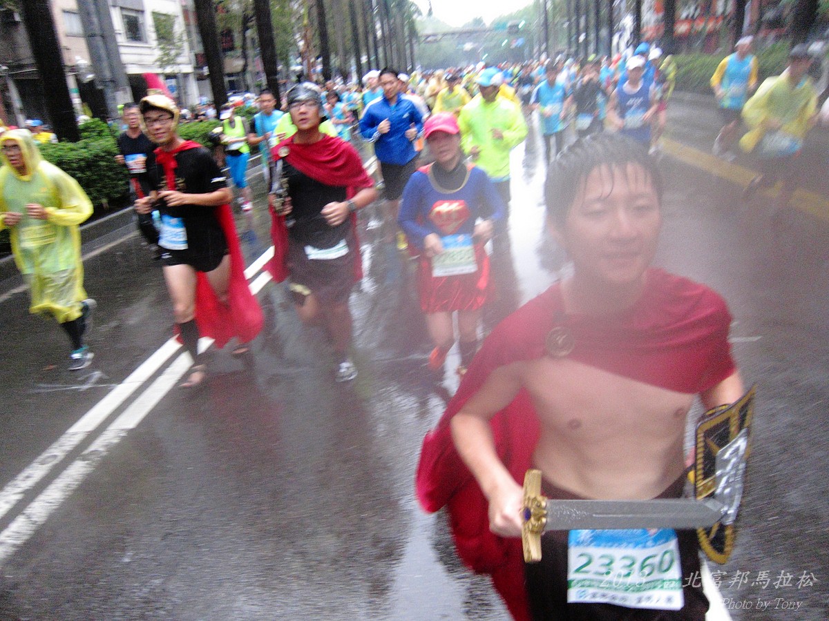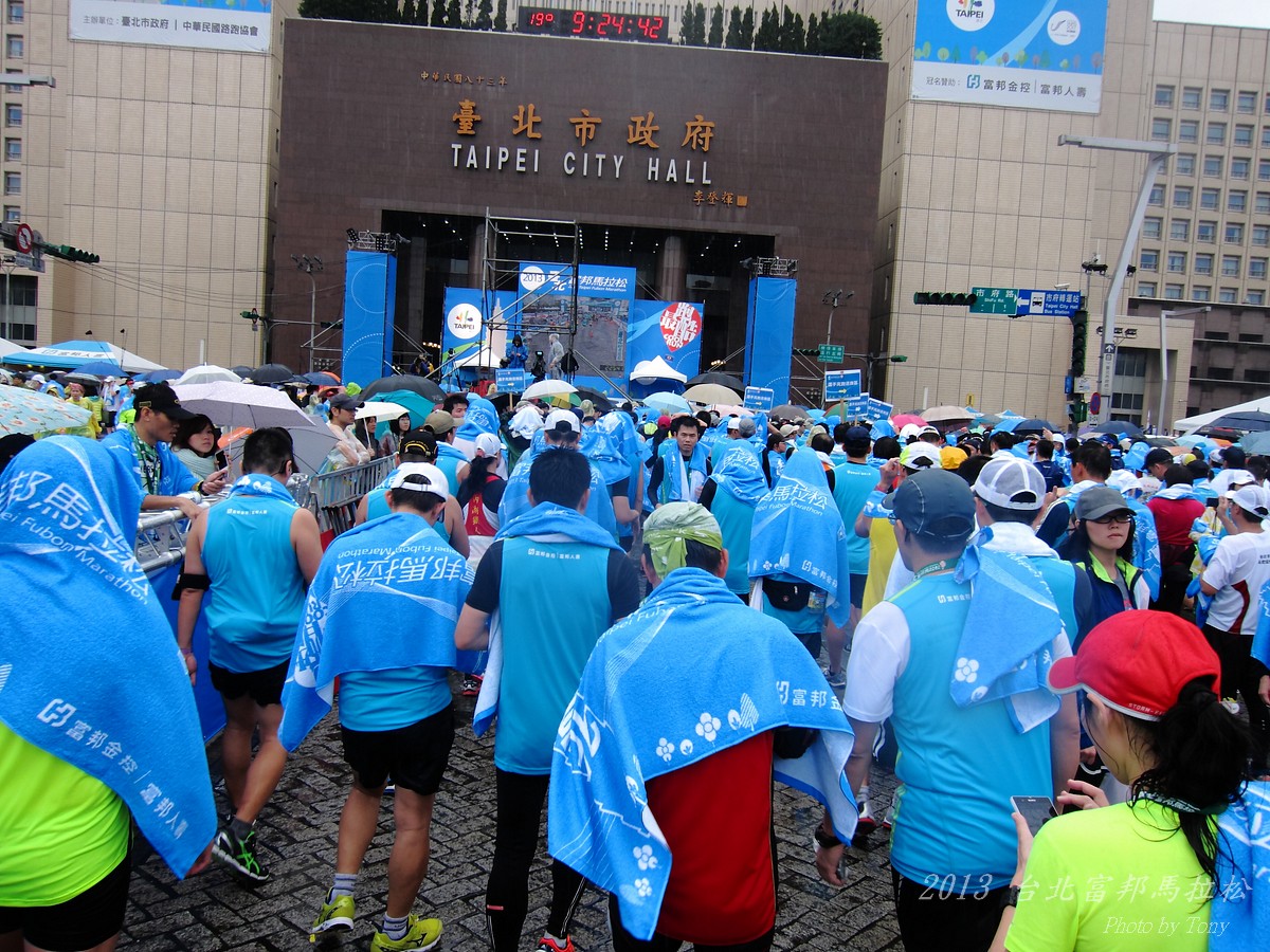 前一天看著天氣預報,心又涼了一截...降雨機率高達90%..Orz 上次太馬已淋了二個小時,我看這次又差不多了XDD 一早來到W和大家集合 因為起床太晚,只得匆匆吃了二個巧克力餅干就準備往市政府集合出發!! 又糊塗的忘了帶一包能量包,只好先和外星人小頡先借一包來放!! 雖然天空下著毛毛雨,但心情卻是熱的... 人也多到爆,擠了13分鐘才出計時拱門,一開始出發的選手都已跑到圓環去了~~XDD 且~~才出發就和大家擠散... 好吧~就慢慢跑吧~ 出發時二旁不乏加油的民眾,先來拍幾張~ 跑個1K~右邊出現了熟悉的聲音~(NATSUMI的笑聲~~) YA~~居然遇上NATSUMI了~ 趕緊過去和大家集合拍個照!! 然後路邊再拍個二張之後...大家又不見了XDD 好吧~遲早是要分開的,就按自己的節奏跑吧~ 不過要按自己的節奏也很難啦,路雖然大條,但人太多,尤其我幾乎又是最後出發的,6分速就得一路超車了XDD 且加油的民眾有時在左邊,有時在右邊,要切來切去有時還有點辛苦啊!! 像是中山北路幾位辣妹,我就是來不及切..跑過頭再繞回去拍的XD 反正....專心跑,和拍照跑,頂多也差個10分鐘而已,快個10分鐘,排名一樣很後面,慢個10分鐘卻多了這麼多可以回憶的照片,我想...這是值得的吧:P 就這樣...一邊跑一邊拍,在下新生高架橋時,居然也被國棟給追上了,看來最近二次每次二小時的LSD特訓真的有用,抽筋棟終於要一雪前恥了~ 跑到忠烈祠前大約11公里,在這的補給站把能量包給吃掉,再喝個半杯舒跑後,繼續向前挺進!! 不過~~就在自己身體覺得愈跑愈順時..,左小腿突然傳來一點點刺痛...Orz 按之前的經驗,我知道我的腓腸肌又出問題了~~ 上週自己用5分半的速度練跑近15k都沒事,怎麼這次在13-14k就出現問題?? 我想..可能是上週的疲勞還沒結束,週三練跑時,好像又稍微有拉到~ 雖然經過三天的休息已沒什麼感覺了,但終究在13-14k後就顯現出來了!! 我看似粗壯的蘿蔔怎麼會這麼弱啊XDDD 路程都已跑一半了,就繼續跑吧~ 降點速讓爆掉的時間延緩大爆發發作!! 就這樣撐到環快上面,雖然只剩2-3KM,但看見補給站還是去喝個水,喝個餅干和香蕉 再到護理站去噴個肌樂!! 沒多久就看到全馬的前導車從後方開過來了 哇塞,第一名回來了,肯亞的喬瑟法·傑可波(Josphat Kamzee Jepkopol)從我身邊飛快的跑過,超強的啦~~ 最後出了基隆路的地下道,只剩最後1KM,大家也都加速了起來,突然被一個小個頭女生刷卡而過,又激起我的鬥志,雖然蘿蔔痛,但還是要看一下刷我卡的是那位女生,努力的用5分速跟上去,只敢拍個背影,不好意思拍正面...XDD,最後200公尺,她再度加速...,我為了要拍照,只好目送她遠離XDD!! 這次成續2:09"15,比太馬退步了一點點~ 我想..照片拍的比較多一些,再加上蘿蔔痛是最大的主因~ 不過這成績我是覺得還可以了啦,蘿蔔痛才是我在意的~(經過一天的休息、冰敷、上小腿套再貼上撒隆適布後,情況已好轉很多~) 未來~我看~得多加強我的蘿蔔訓練才行!! 這次台北富邦,本想希望看能不能請老婆帶著兩隻小鬼來終點幫我加油~ 但這雨實在太大~~ 只好看看下次有沒有機會了!! ^__^ 距離: 22.22 公里 時間: 2:09:15 平均步速: 5:49 分鐘/公里 平均心率: 162 bpm Avg Run Cadence: 180 spm Avg Vertical Oscillation: 7.3 公分 Avg Ground Contact Time: 245 毫秒 Avg Stride Length: 0.95 公尺 衣保袋一個100元,很大,可以裝很多東西,不過不防水,這種天氣自己的乾衣服要用塑膠袋再包起來!! 為了富邦馬,第一次搭信義線捷運!! 捷運提早發車,許多人都搭捷運來市政府前集合!! Go Fun 準備集合出發了!! 原諒我的小相機在燈光不足下的效果實在....Orz GOGOGO~~(KT你終於出現在我的相機裡了!!) 我們還沒出發,前面的己經跑到仁愛路圓環了!! GO~出發!!(大家都不見了XD) 後面的無臉人是怎麼回事XDD YA~~撿回Go Fun隊員--林庭瑄 這次進步超多的果凍~ 撐到9K還是ITB的WES~XDD 賽完以為自己破PB的NATSUMI~:P 看到相機就瘋了的大家XDD 讚讚讚~~有觀眾加油真的跑起來比較有力!! (這裡才不到3K~當然很有力~:P) 也有視障者加入,毅力讓人佩服!! 加油~加油~ 加油~加油~ 斯巴達出現了~ 空姐出現了~~ 熱情的民眾~ 格格也在總統府圓環出現了~~:P 就是這幾位辣妹~讓我沒破PB的~ 阿姨加油~辛苦了!! (晴天的話很想多拍台北市風景,但下雨一片霧茫茫..只好多拍加油的民眾!!) 全馬半馬在這裡要分開了(分開後..人還是一樣多XDD) 雖然下雨,但還是滿滿的人潮!! 經過忠烈祠了!! 白蘭氏這幾位加油的美眉真可愛^O^ 這二位穿著白西裝和小禮服來跑步,好猛啊!! 要上快速道路了!! 折返點到了!!終點不遠了! 半馬靠內跑,因為...第一名要來了!! 第一名回來了,肯亞的喬瑟法·傑可波(Josphat Kamzee Jepkopol)從我身邊飛快跑過,超猛!!一下子就不見了~~ 大家幹嘛這麼HIGH~ 因為地下道上頭有攝影師啦!! 就是這位妹妹,最後1K把我刷卡了XDD 終點到了!!終點到了!! 2小時23分抵達!! 我的眼鏡起霧了!! (難怪一片霧茫茫 XDD) 排隊領毛巾和獎牌!! 跑的時侯不會冷,一停下來就覺得冷了! 大家紛紛把大毛巾給披上!! 我的晶片沒有去退還,就捐給罕見疾病基金會了!! 獎牌的質感還不錯~(但我拍的背面去了XD) 坐在角落竊笑的小花 恭喜林庭瑄完賽 Go Fun大集合~ 回家前撿到外星人小頡,以3:39完賽,真是太強大了!! -------------------------------------------
